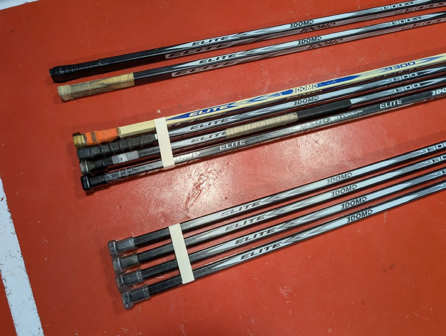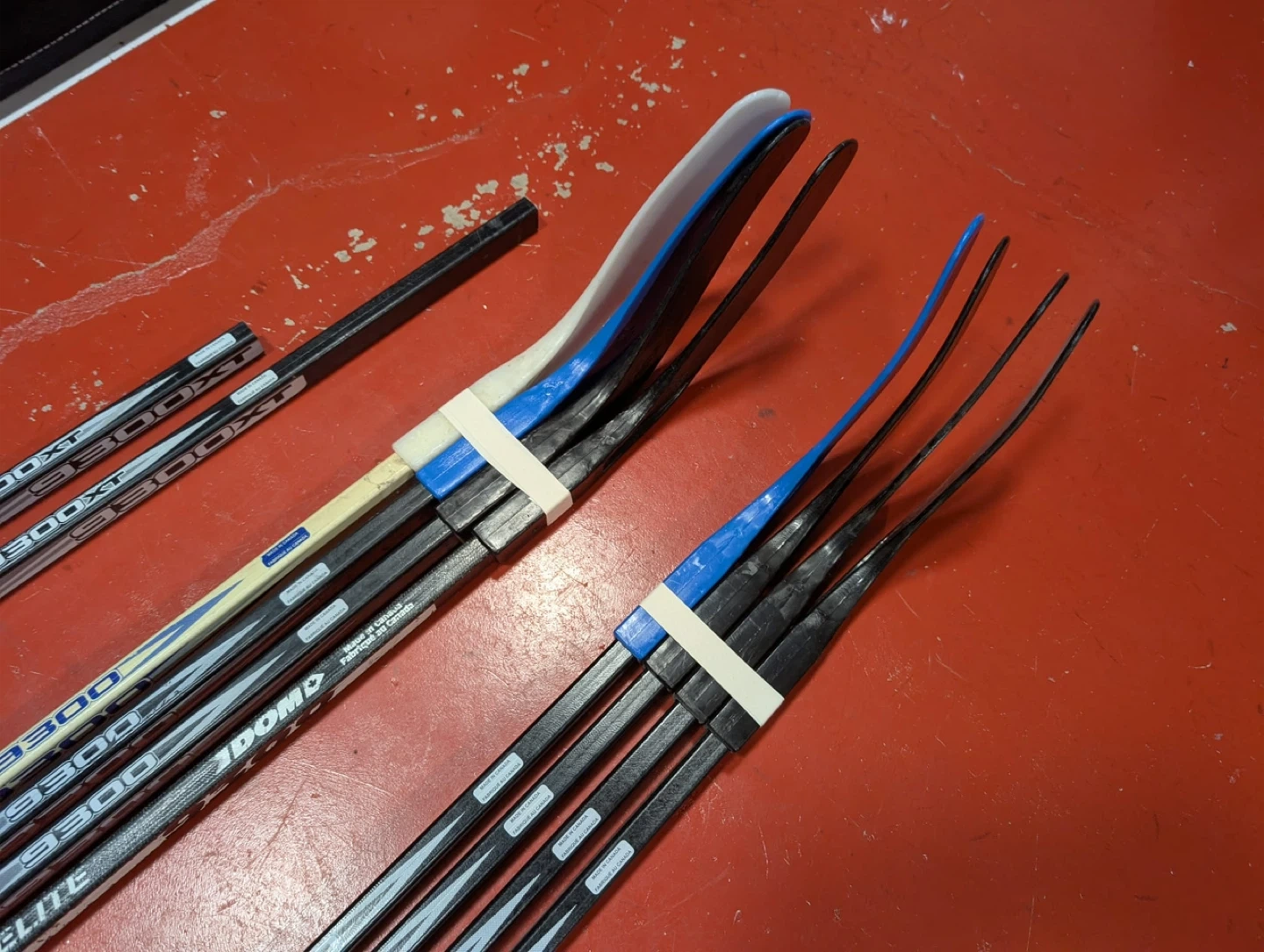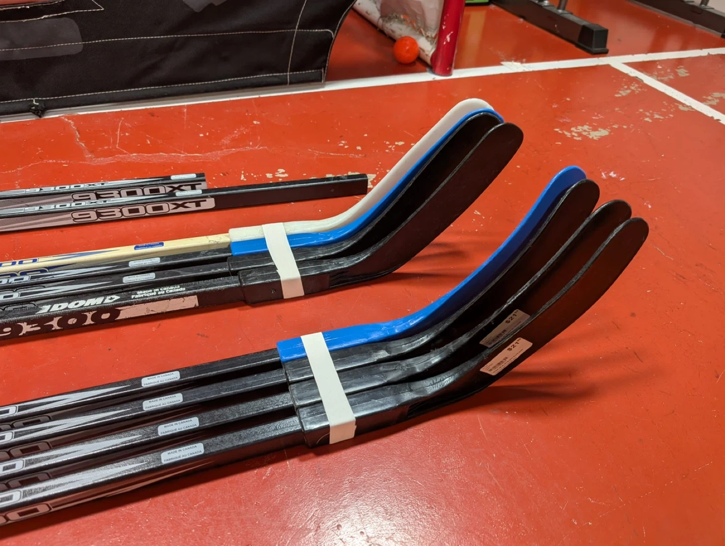 Selling a collection of floor hockey sticks: 4 New with blades 4 Used with blades 1 Used XL Shaft with no blade 1 Used cut XL Shaft with no blade High quality fibreglass sticks 54 inches in length Made in Canada Will sell separately or as a bundle!