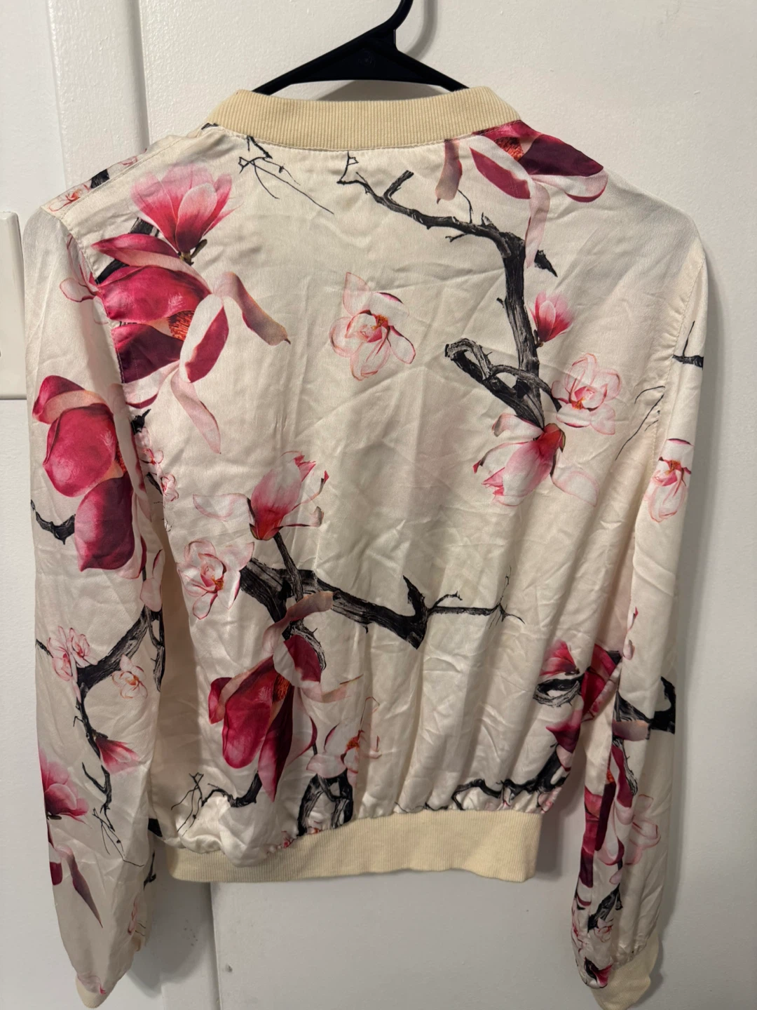 Silk Floral Bomber Jacket - Size M