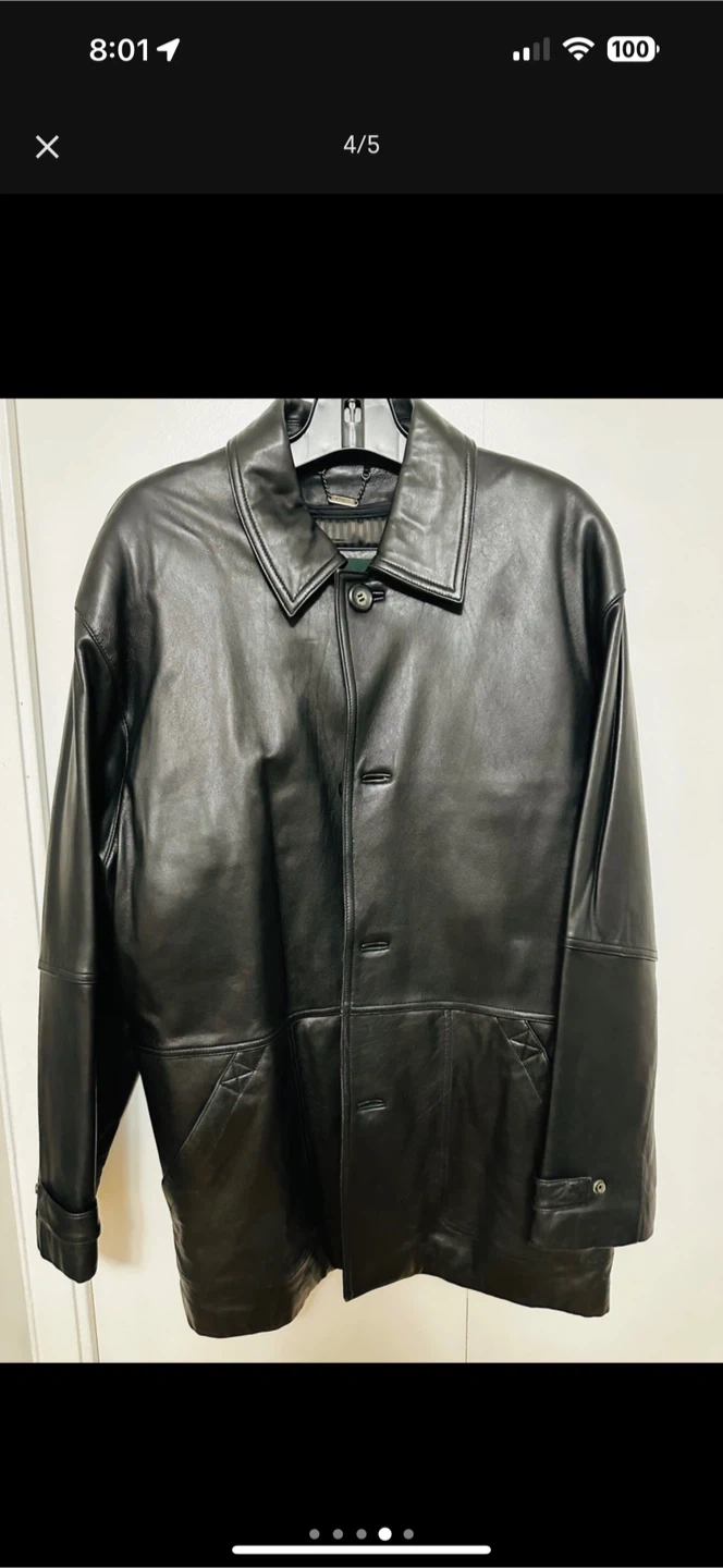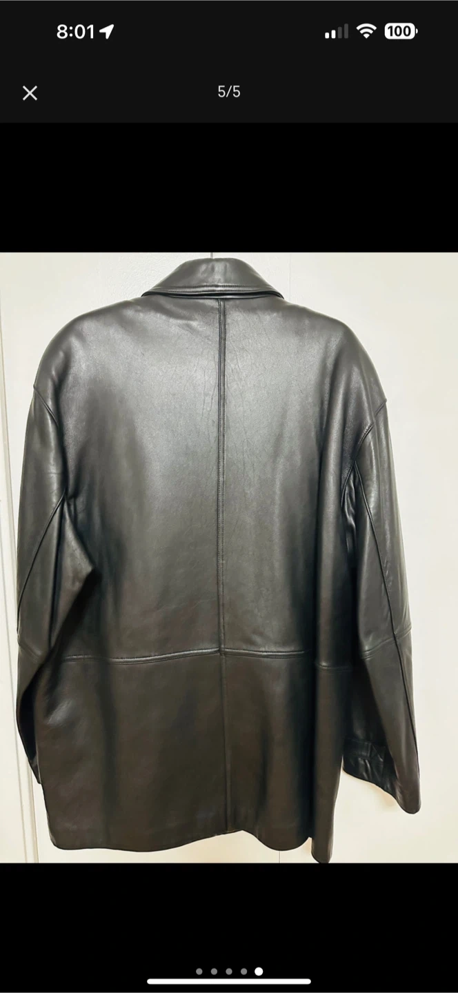 Here's a Danier black leather jacket in great condition! The tag says it's a size Large. It's a classic style that would look great with anything