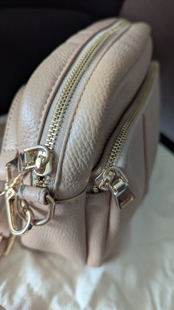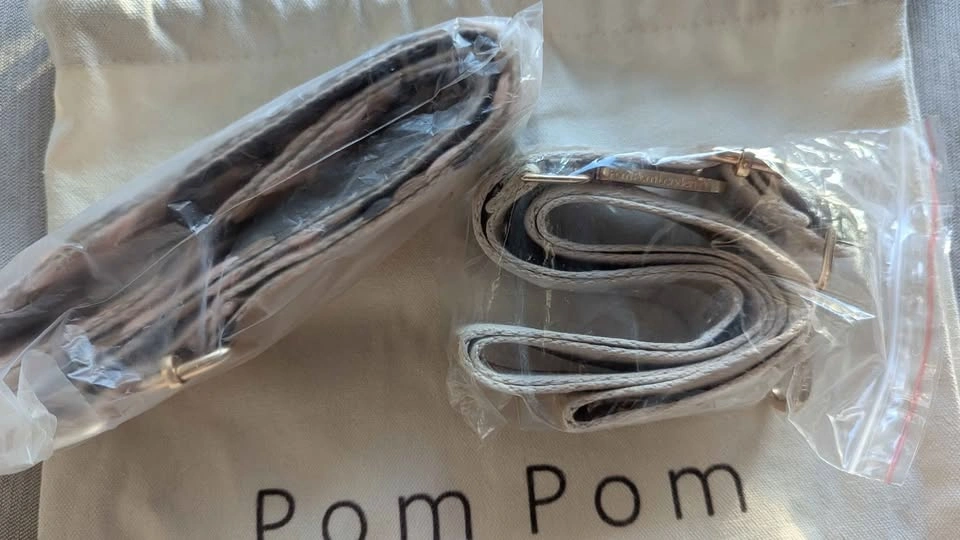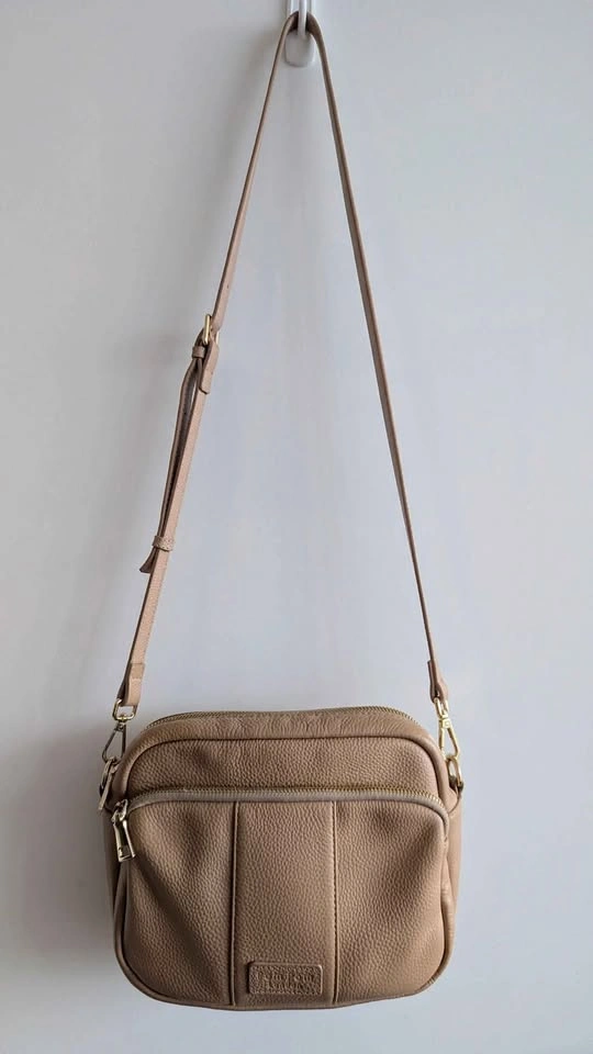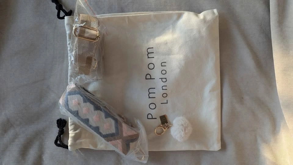 Closet cleaning! - A classic crossbody bag in colour nude - Premium Leather - Crafted from 100% full-grain leather. - Practical Design - many pockets - Comes with a Pom Pom London dust bag, 3 interchangeable straps and a mini Pom Pom Keyring - Purchased last year, in great condition, selling due to closet clean up. - Some marks where the straps attaches to (see picturea) Approximate dimensions: Width - 23cm, Depth - 9cm, Height - 17cm Width - 9in, Depth - 3.5in, Height - 7in Retails for $225 / 119.95 UK pounds Pickup near Lakeshore and Bathurst