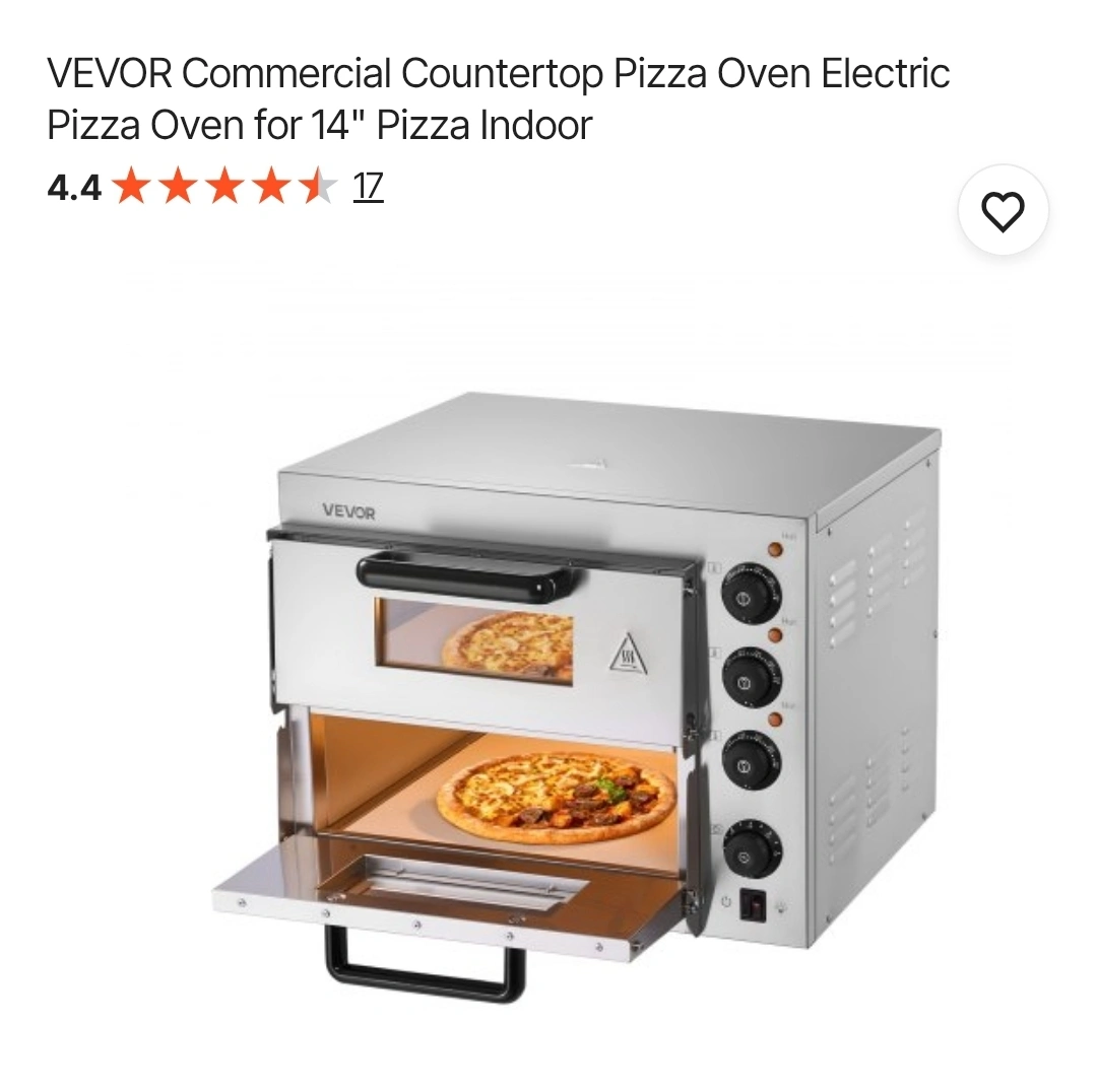 Selling a VEVOR commercial countertop pizza oven! It's an electric pizza oven designed for 14" pizzas indoors. Perfect for making delicious pizzas at home. It works great I opened it just to see if it works used ot once and boxed it. I purchased it for $400 .