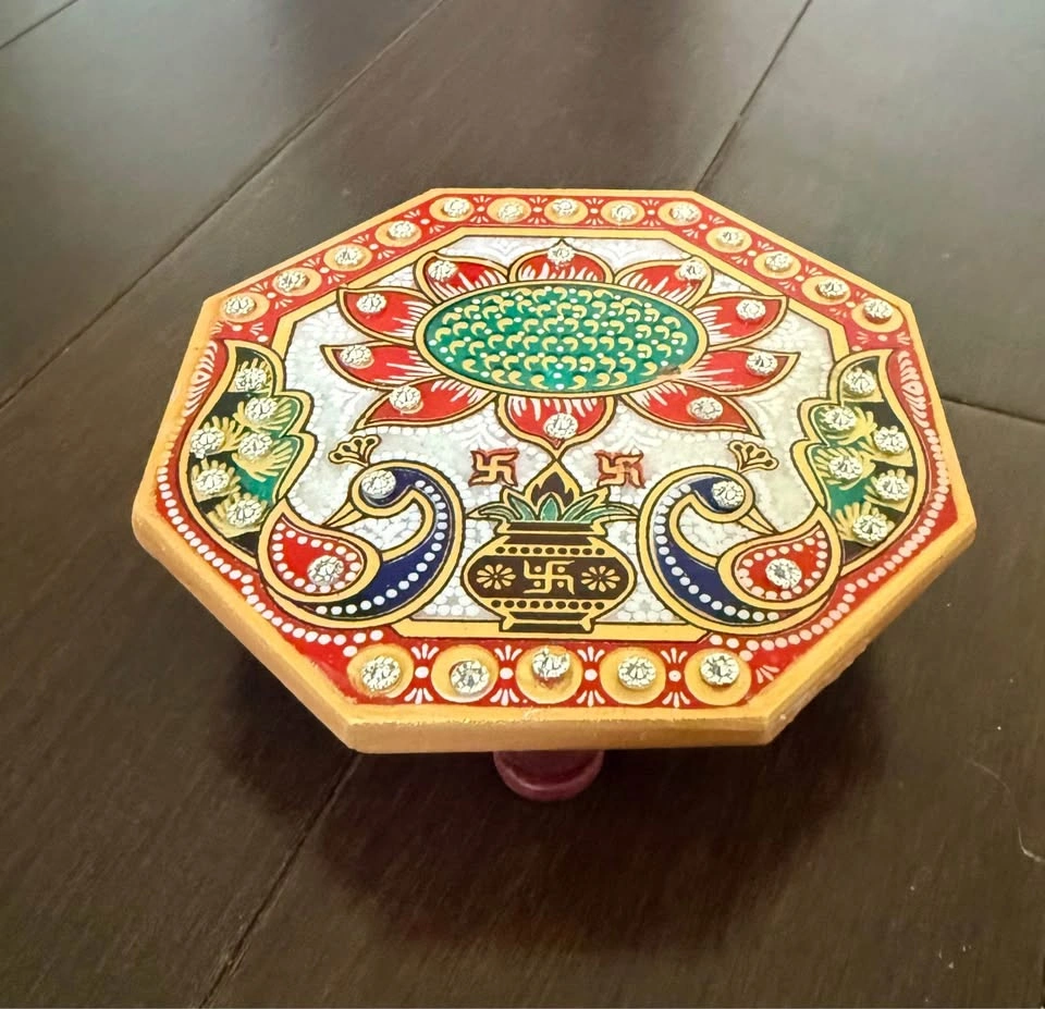 Marble pooja Chowki Hexagonal 4x 4 inches