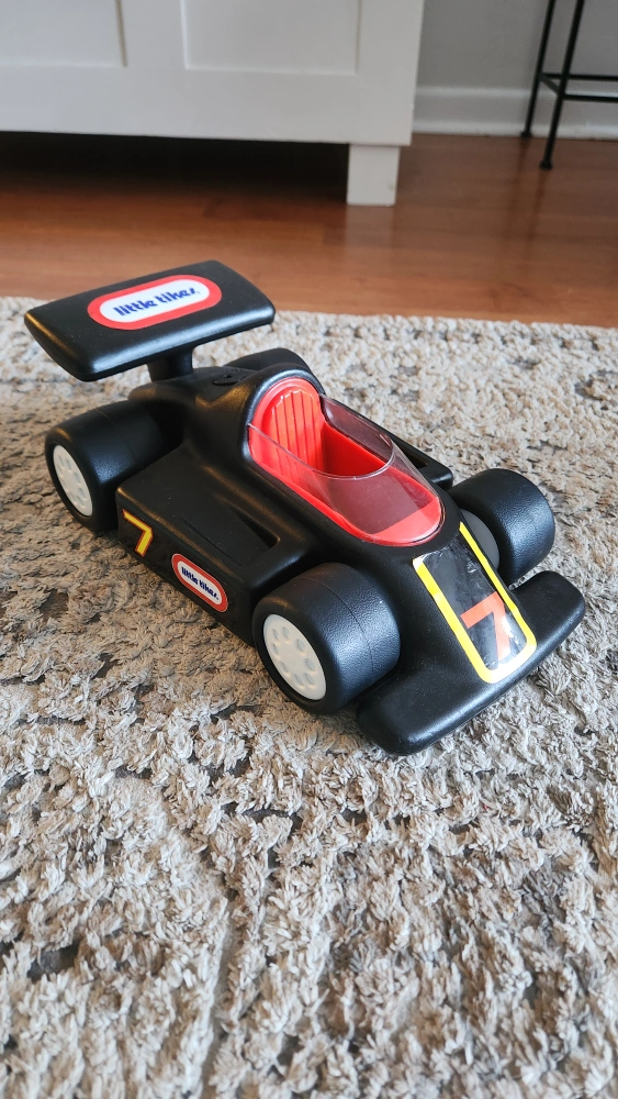 Selling a 1980s Little Tikes race car in black! It's in great condition and ready for a new home. Perfect for little racers!