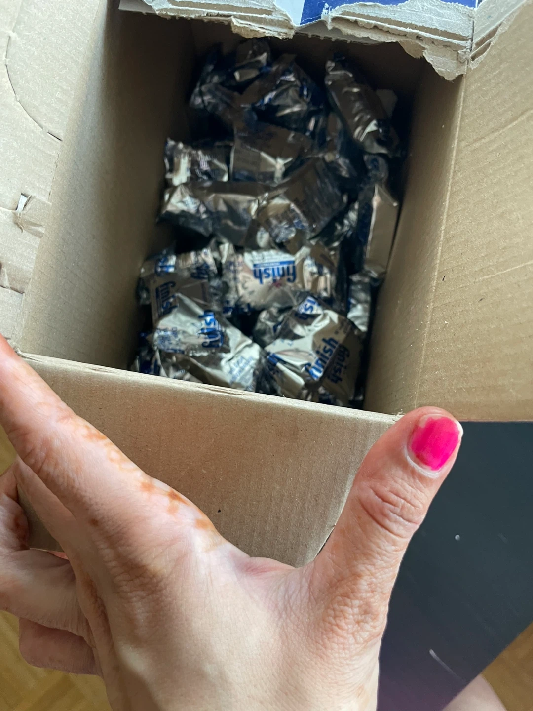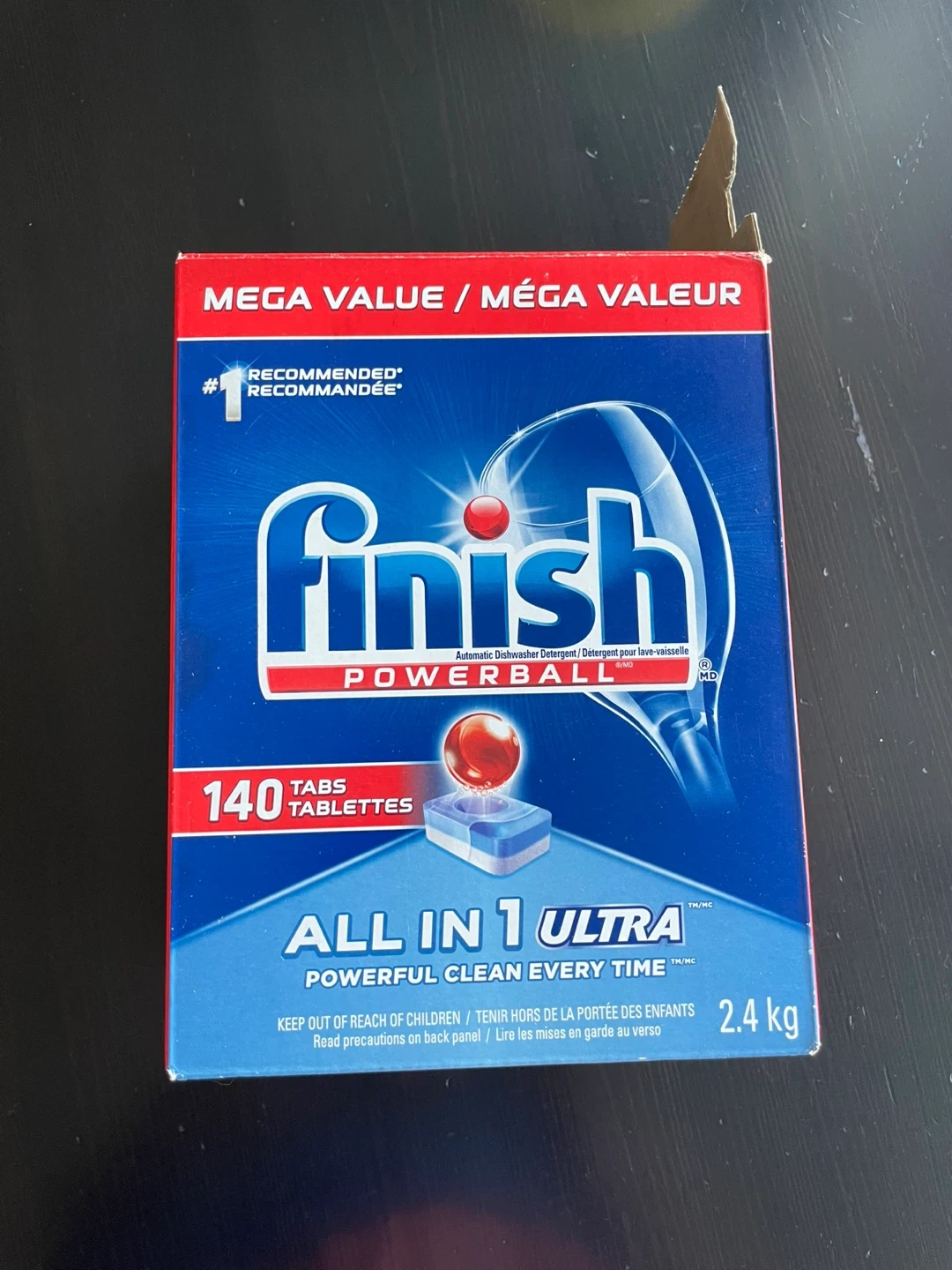 Selling a box of Finish Powerball All in 1 Ultra dishwasher detergent tabs. The box is open and contains 90+ tablets, perfect for keeping your dishes sparkling clean! These tabs offer powerful clean every time and are easy to use.
