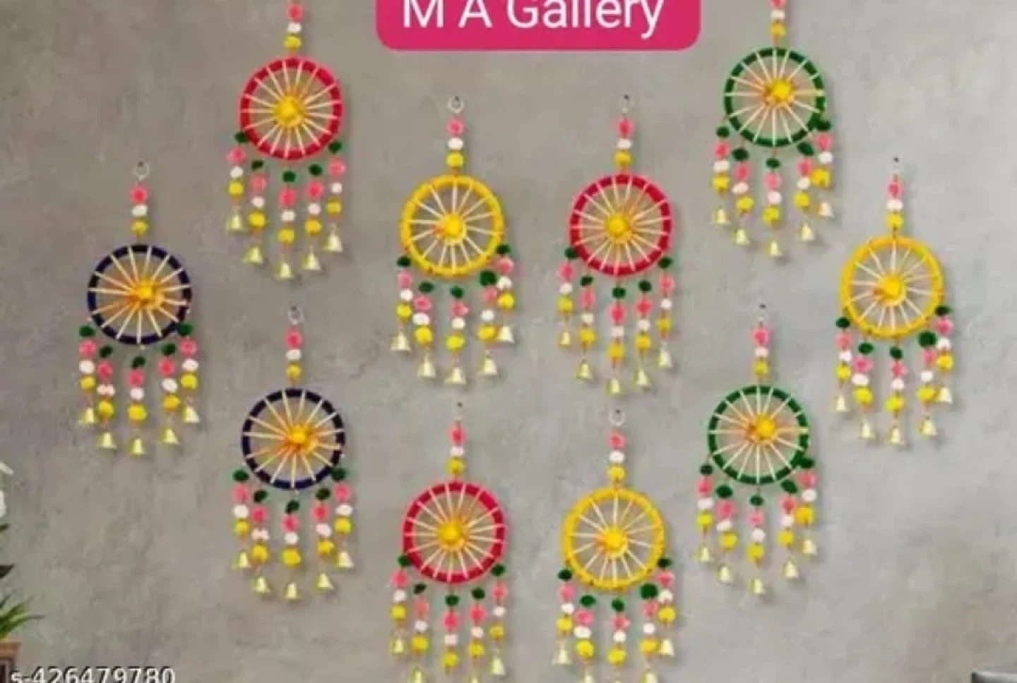 46Add a touch of charm to your home with these handcrafted decorative wall hangings! Each piece features a unique design with colourful beads and small bells, perfect for adding a whimsical touch to any room $15 for 8 $2 each