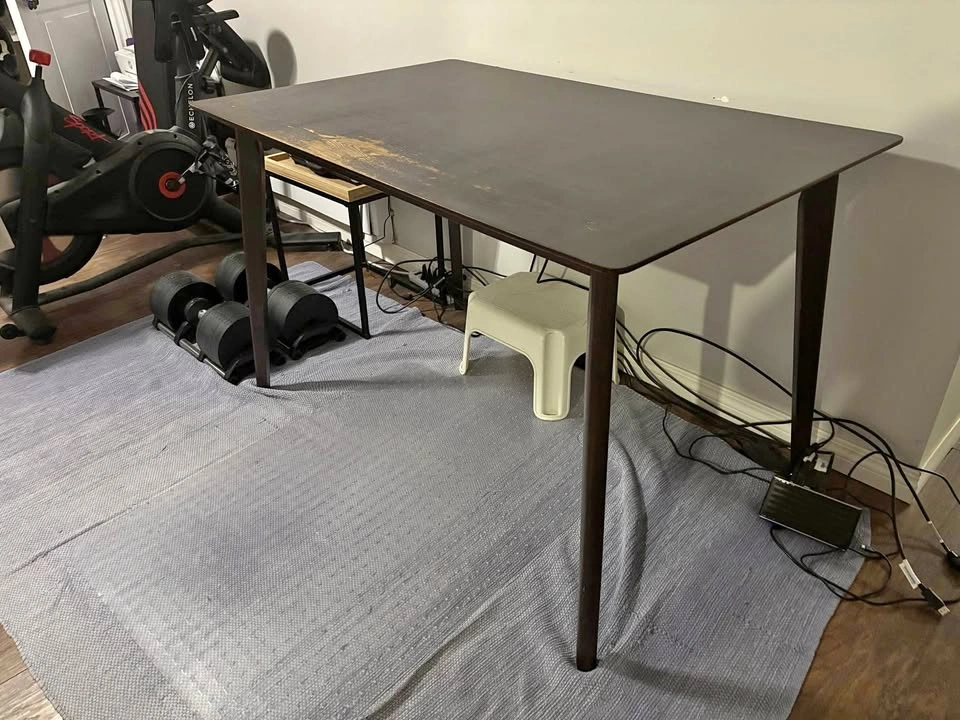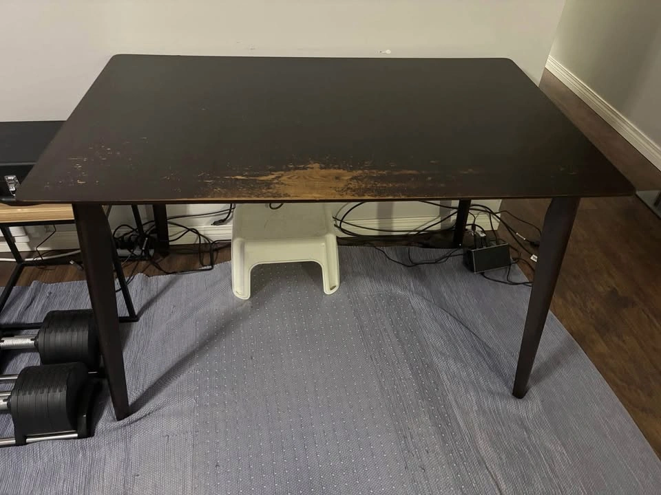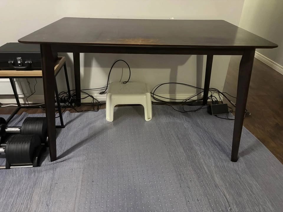 Brown Structube Dining table. This is a great table that I’ve used as a desk for years. It needs to be refinished. Super Easy assembly: four legs to be attached. $50 or best offer. Pick up only.