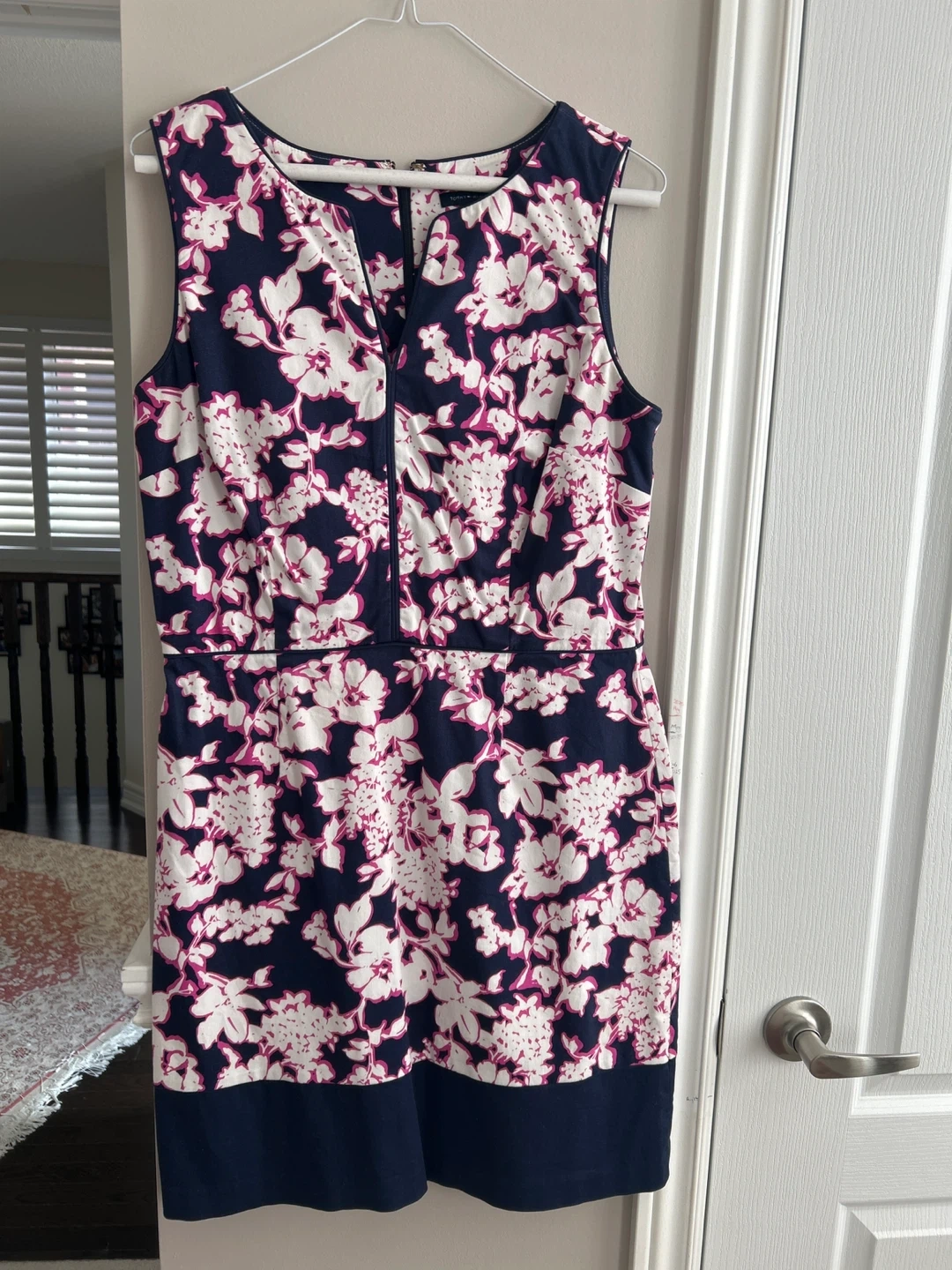 Selling a lovely Tommy Hilfiger dress in size 10! It features a beautiful floral pattern with navy blue, white, and pink colours. Perfect for a summer day. In great condition and ready for a new home!