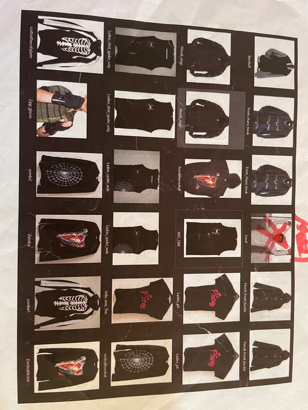 Selling a variety of ladies' shirts and hoodies, including spider-themed designs and skeleton prints. Check out the photos for details!