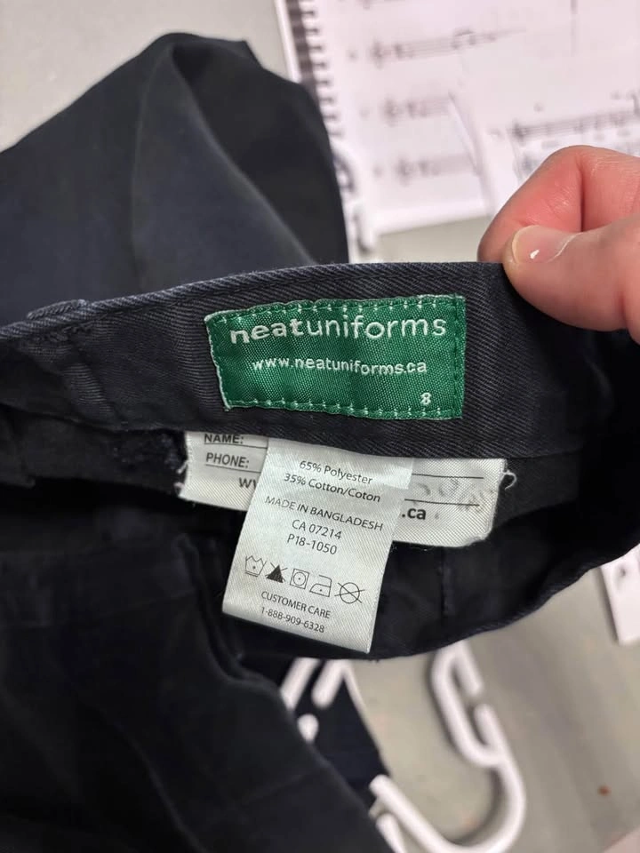 12Trousers/ Causal pants, unisex Brand: Neatuniforms and R.J McCarthy Size 8 ; 3 pairs (Light used), Priced for all. Was used for school of our lady of Fatima Maybe suitable for the other private schools as well. Pick up only in Coquitlam near Poirier community center