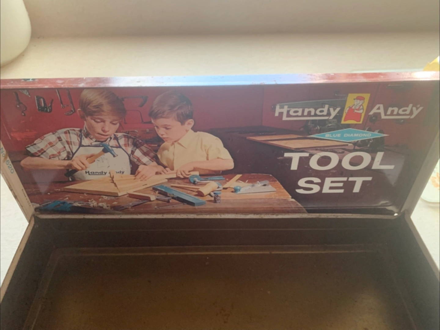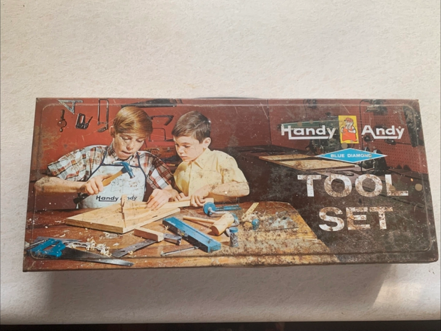 Selling a vintage Handy Andy Tool Set. It's a cool piece of nostalgia and would be great for a collector or as a decorative item. The box has a charming vintage look!