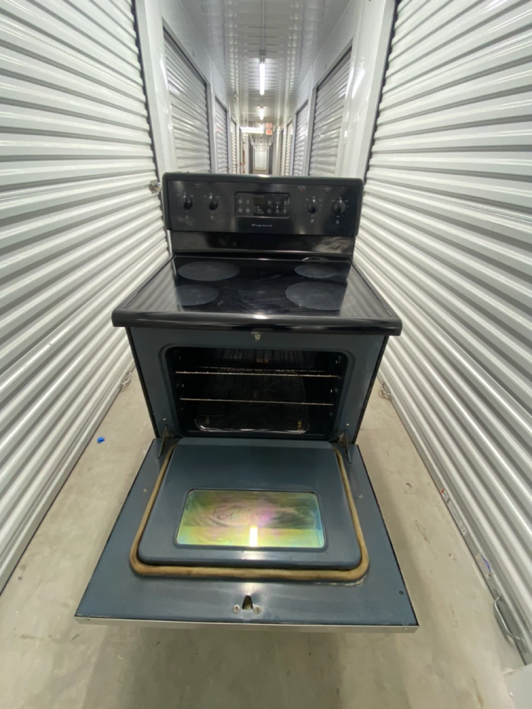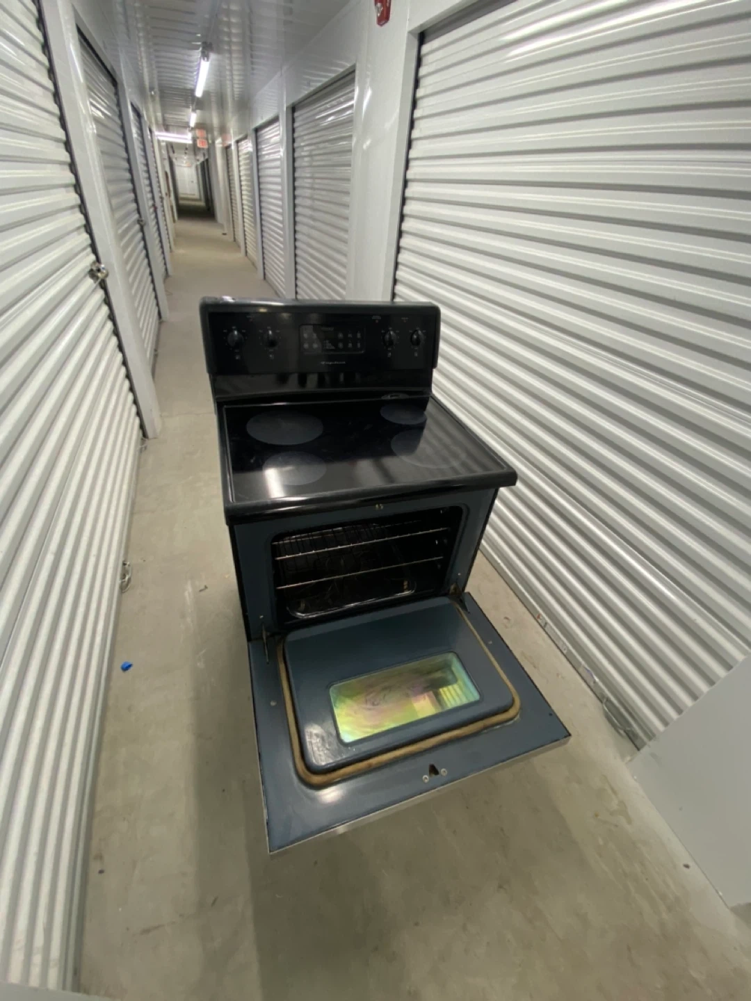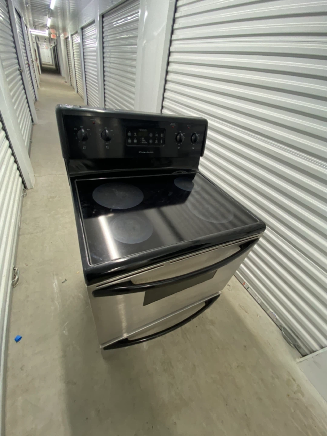 I'm selling a used electric range in black and stainless steel. It's in good working condition and ready for a new home. Perfect for your kitchen!