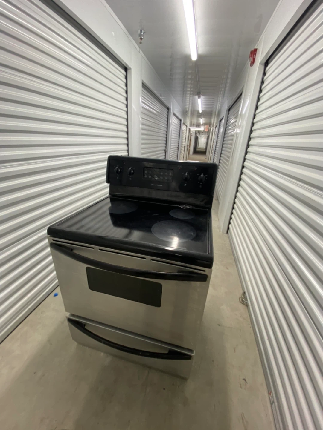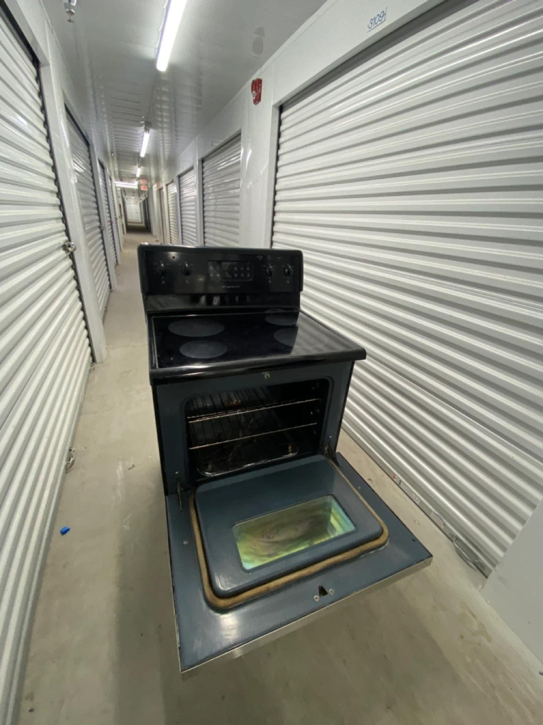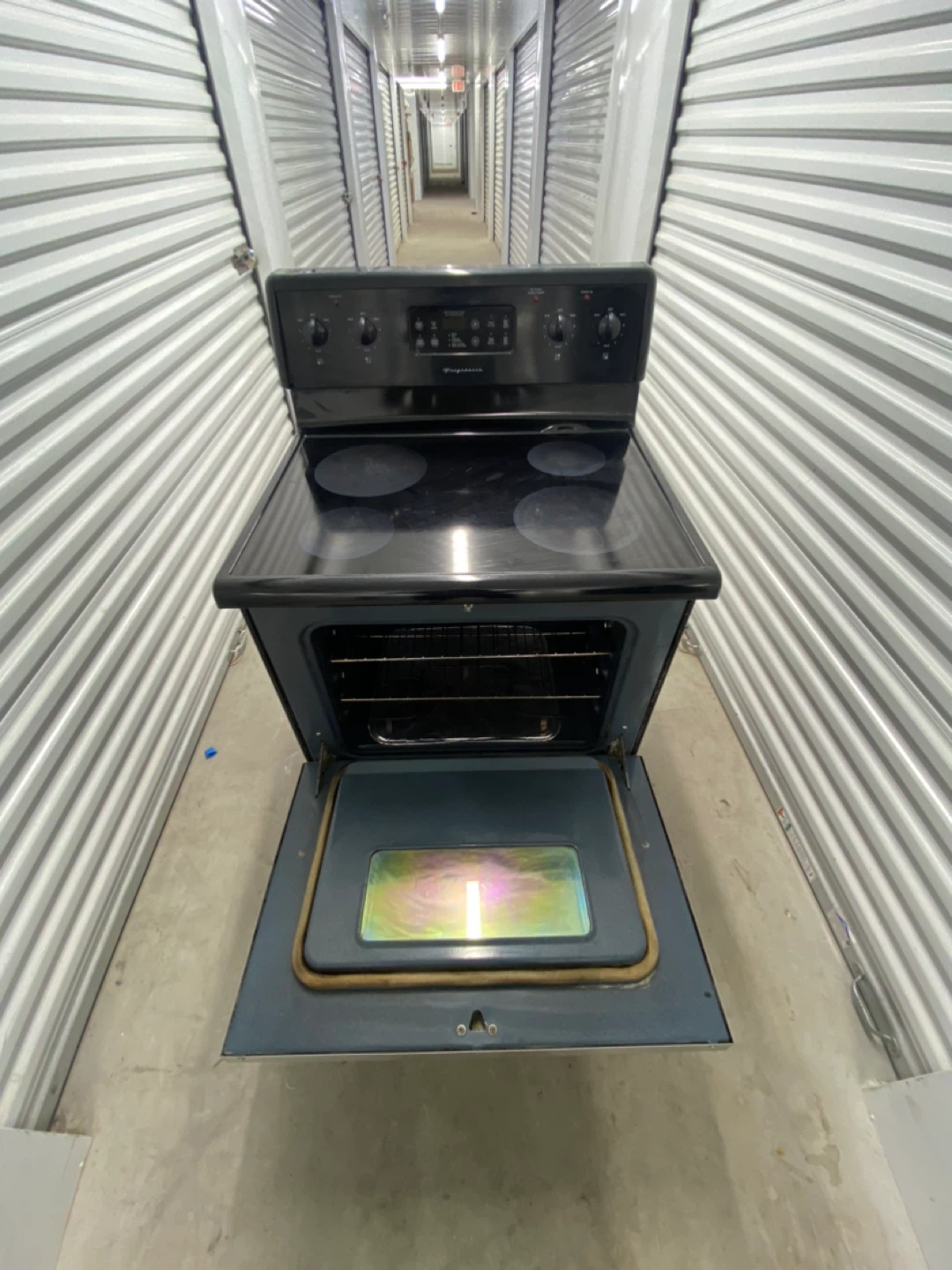 I'm selling a used electric range in black and stainless steel. It's in good working condition and ready for a new home. Perfect for your kitchen!