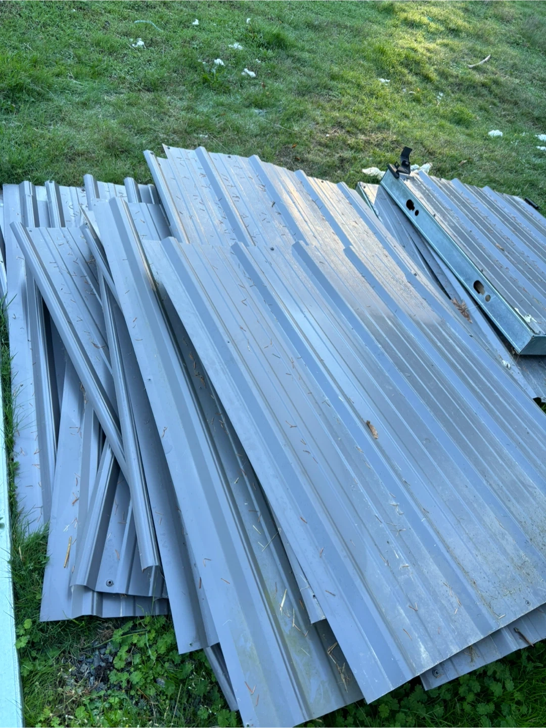 Selling some metal roofing sheets. They are grey and are approx 49” high x 40” wide. I have approx 20 sections plus two gate structures. Perfect for sheds, barns, or other outdoor structures. I was using them to enclose a pen as shown in the last picture which I have since sold. This is for the roofing/siding material only.