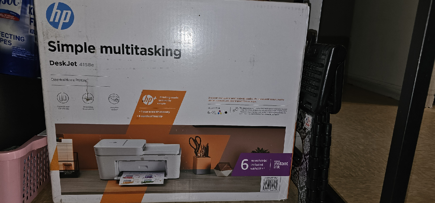 Selling an HP DeskJet 4158e printer. It's designed for simple multitasking and essential home printing. It also comes with a 6-month trial included with HP+
