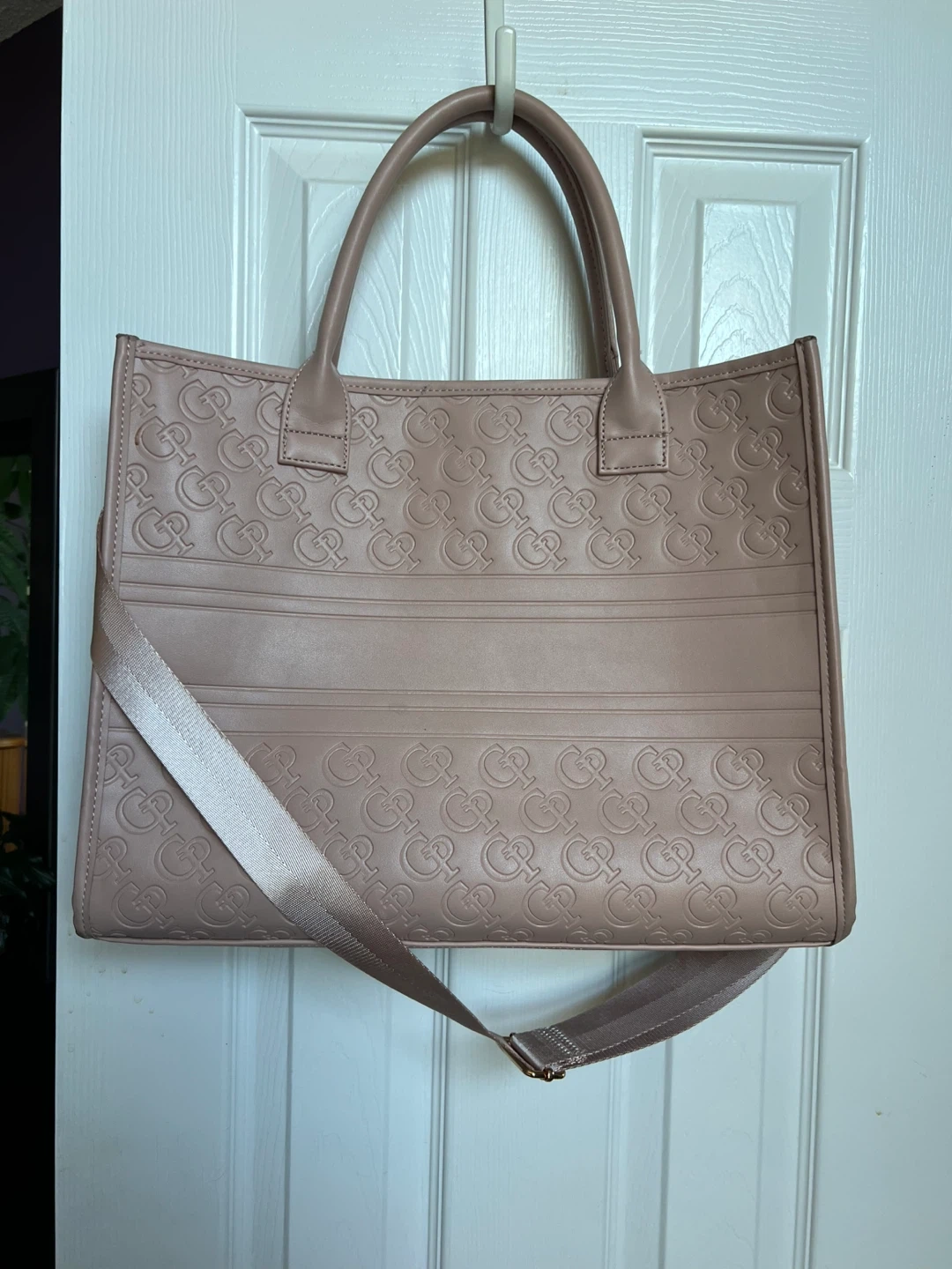 Selling a cute tote bag! It comes with a shoulder strap for easy carrying. The bag has a unique pattern and is in great condition. Perfect for everyday use or as a stylish accessory. 16 inches wide and 13 inches tall