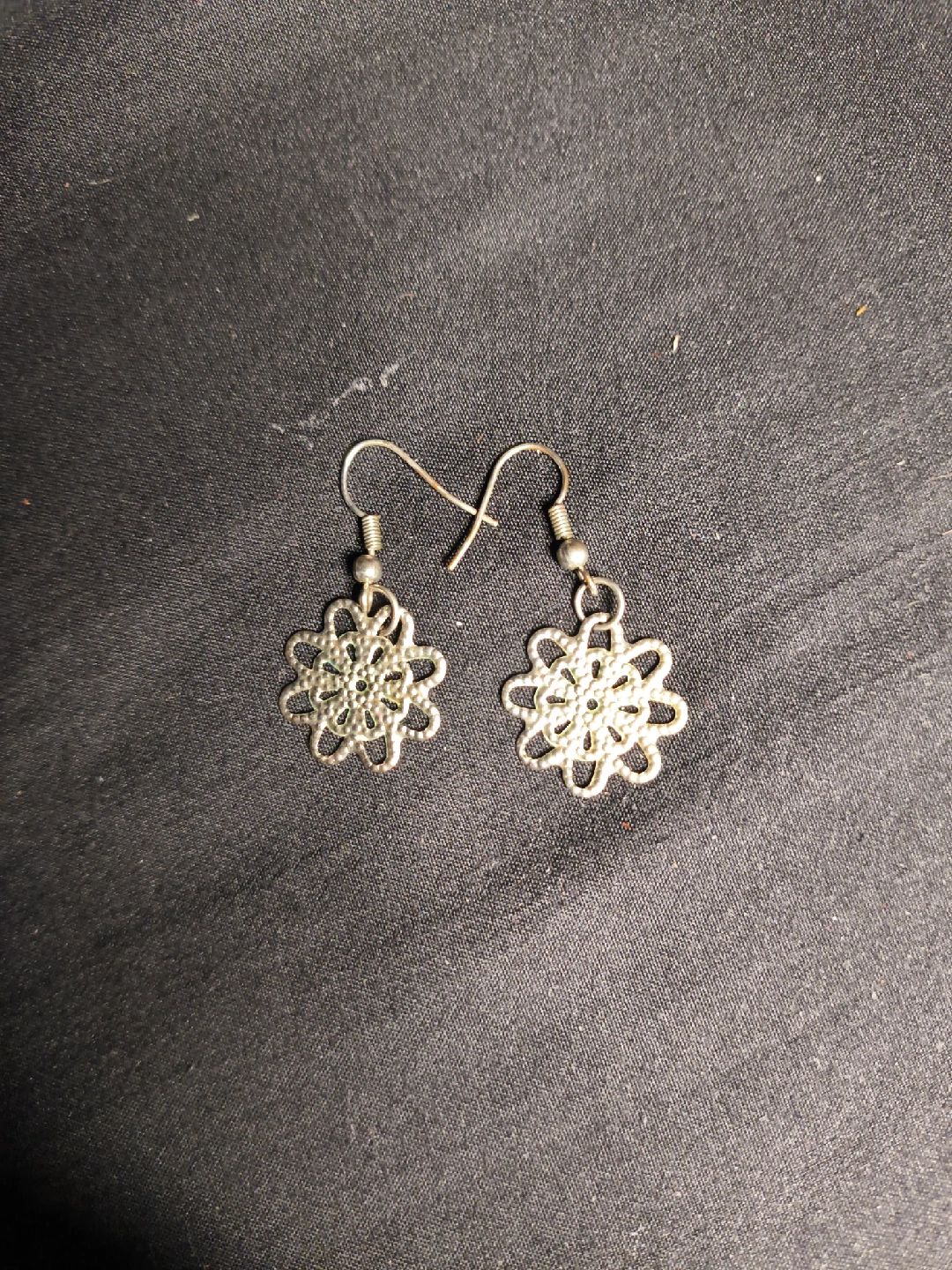 Cute pair of flower dangle earrings! They have a delicate, intricate design. Perfect for adding a touch of charm to any outfit