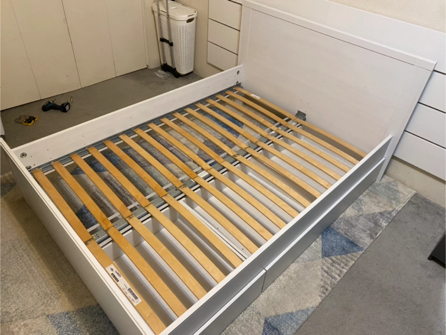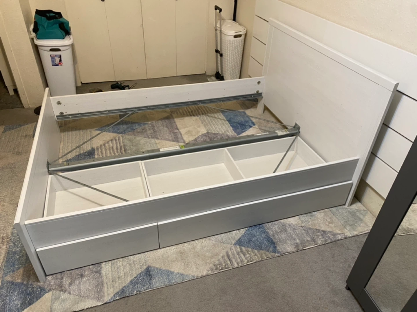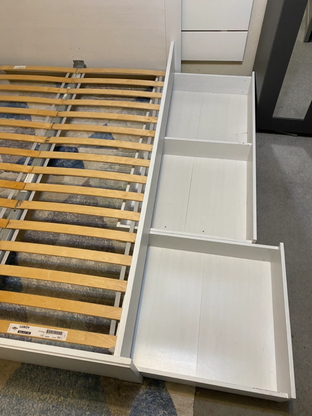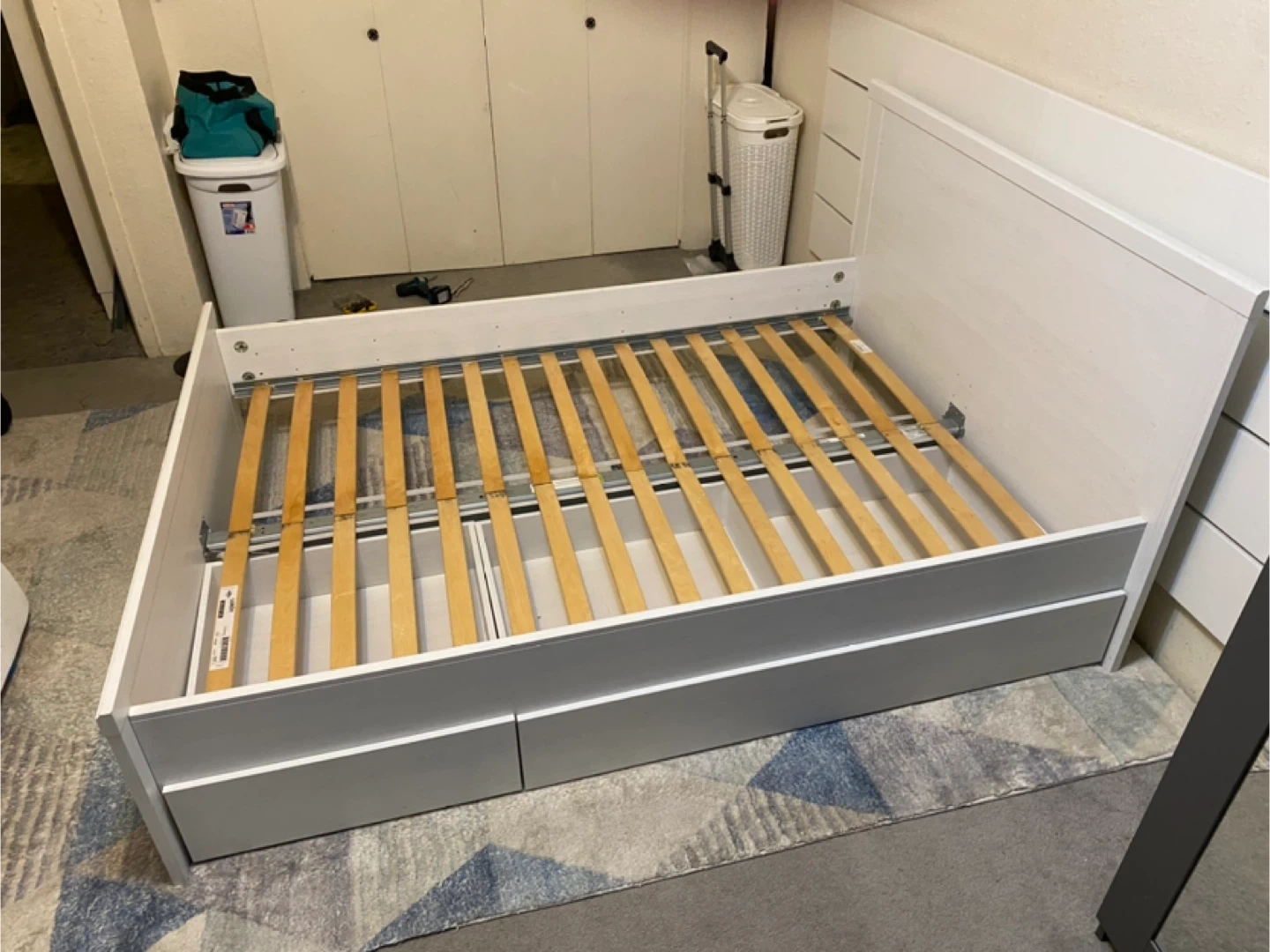 Selling an IKEA bed frame with storage drawers! It's in very good condition and ready for a new home. Perfect for maximizing space in smaller rooms double/full size .smoke and pet free . Pick up near surrey centre station or can deliver and assemble for extra.