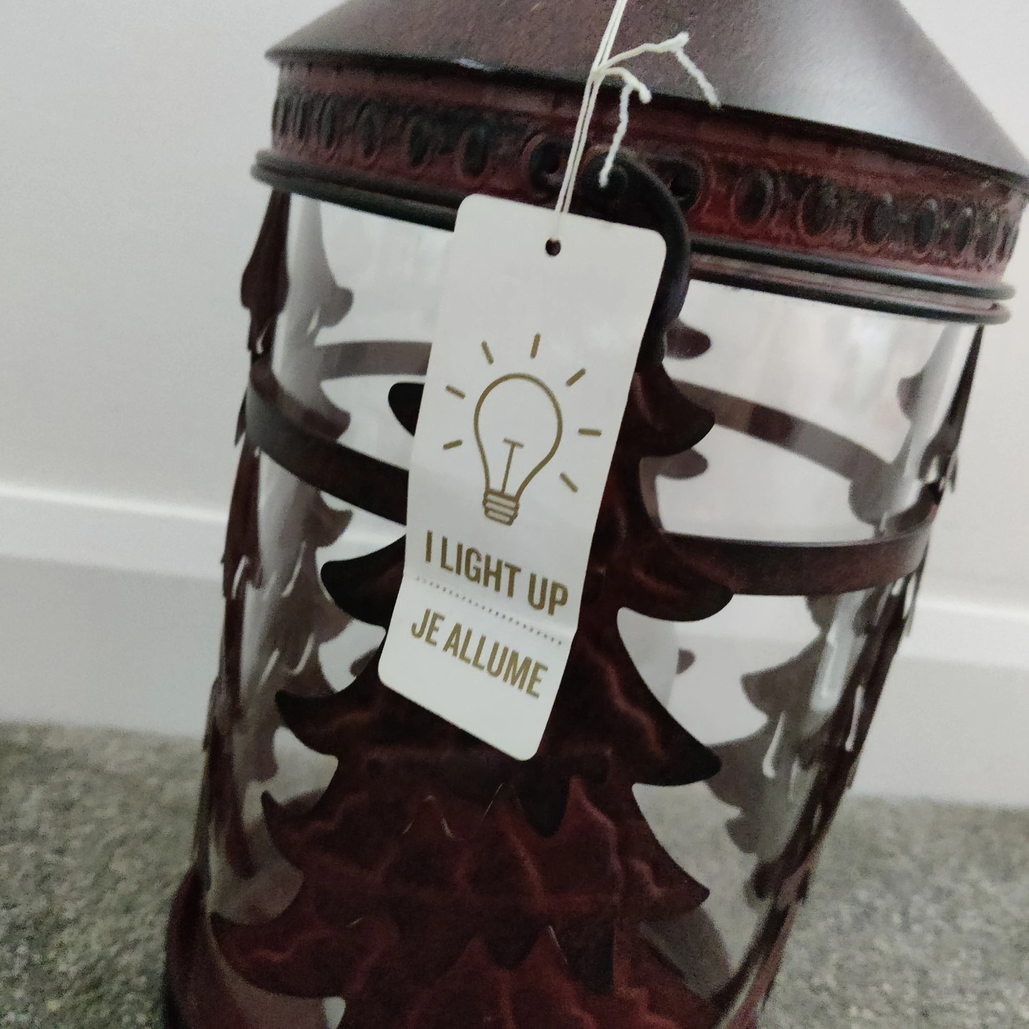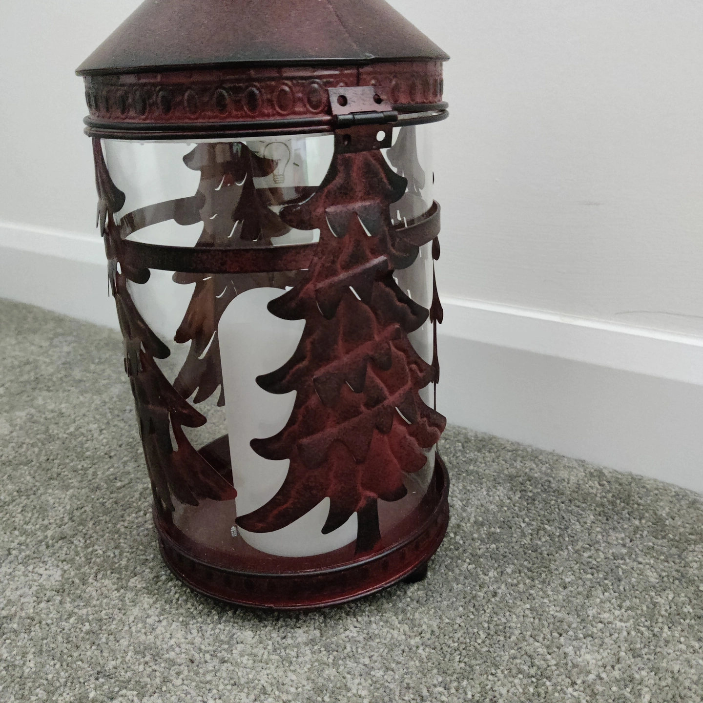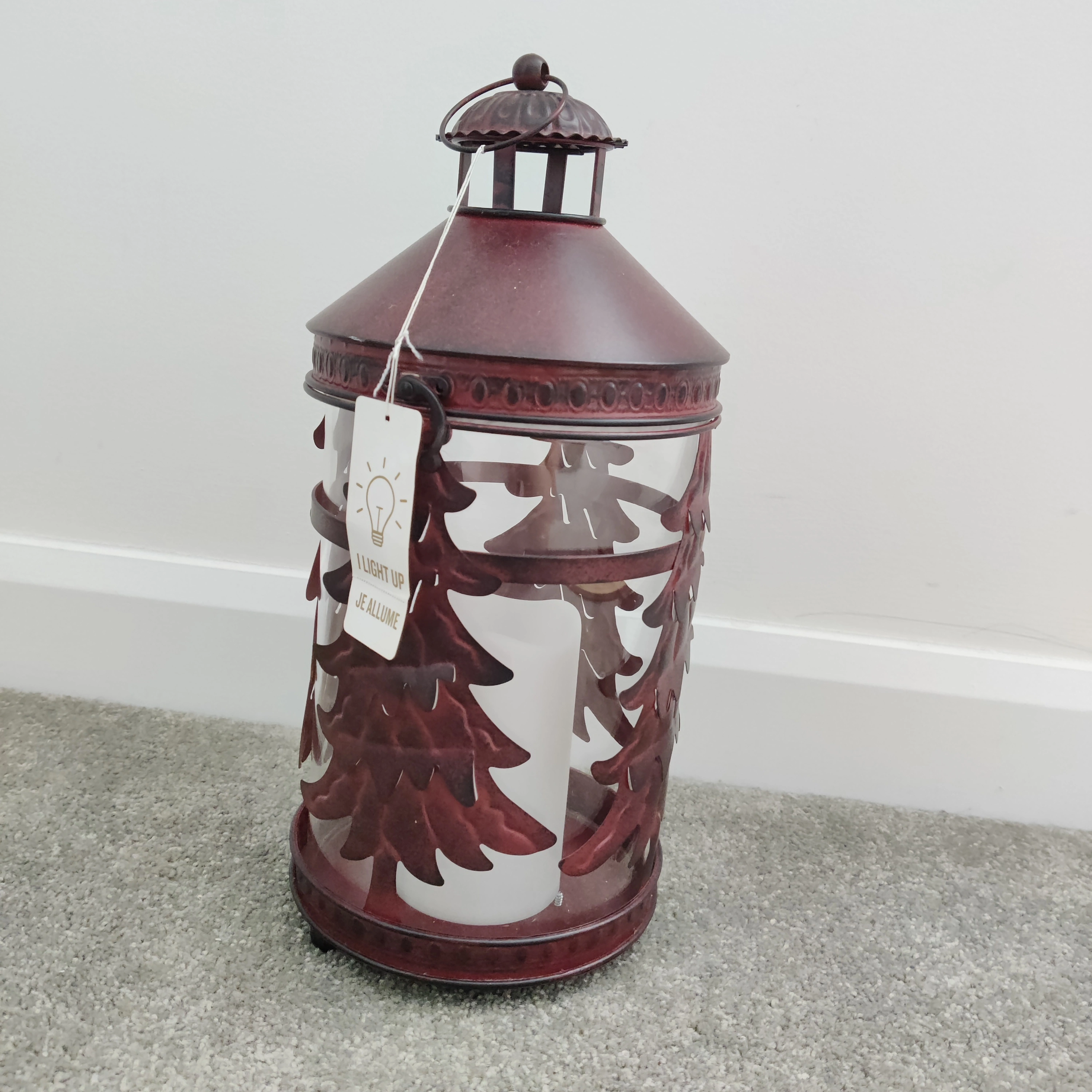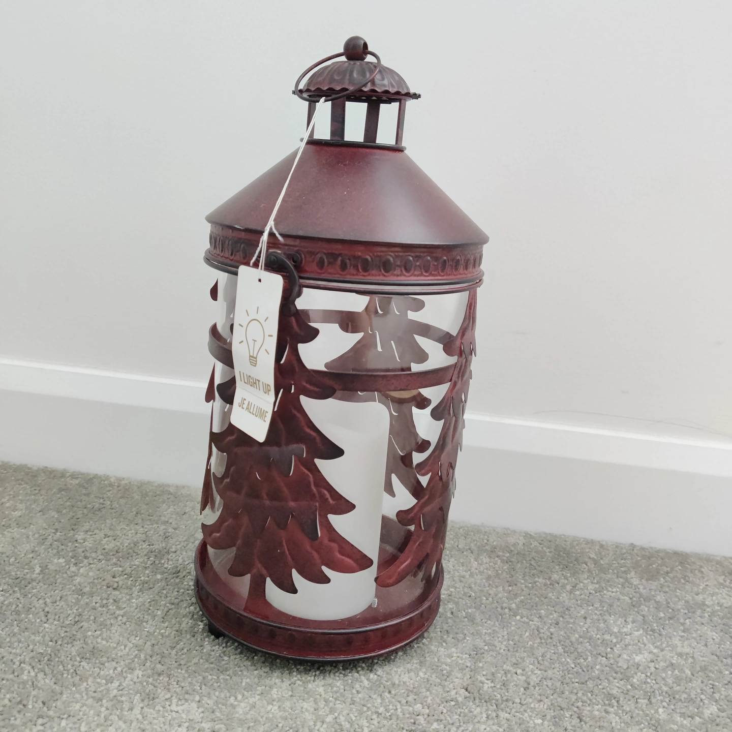 10Martha Stewart Pine Trees 14" Metal Maroon Lantern Candle Holder Christmas Decor