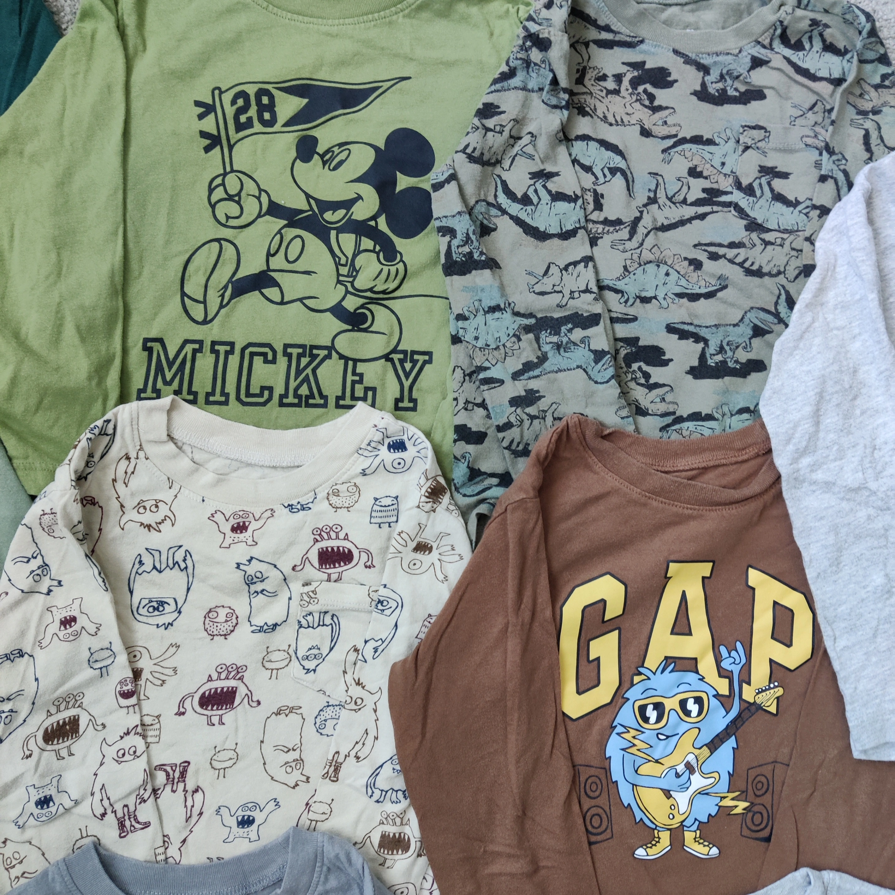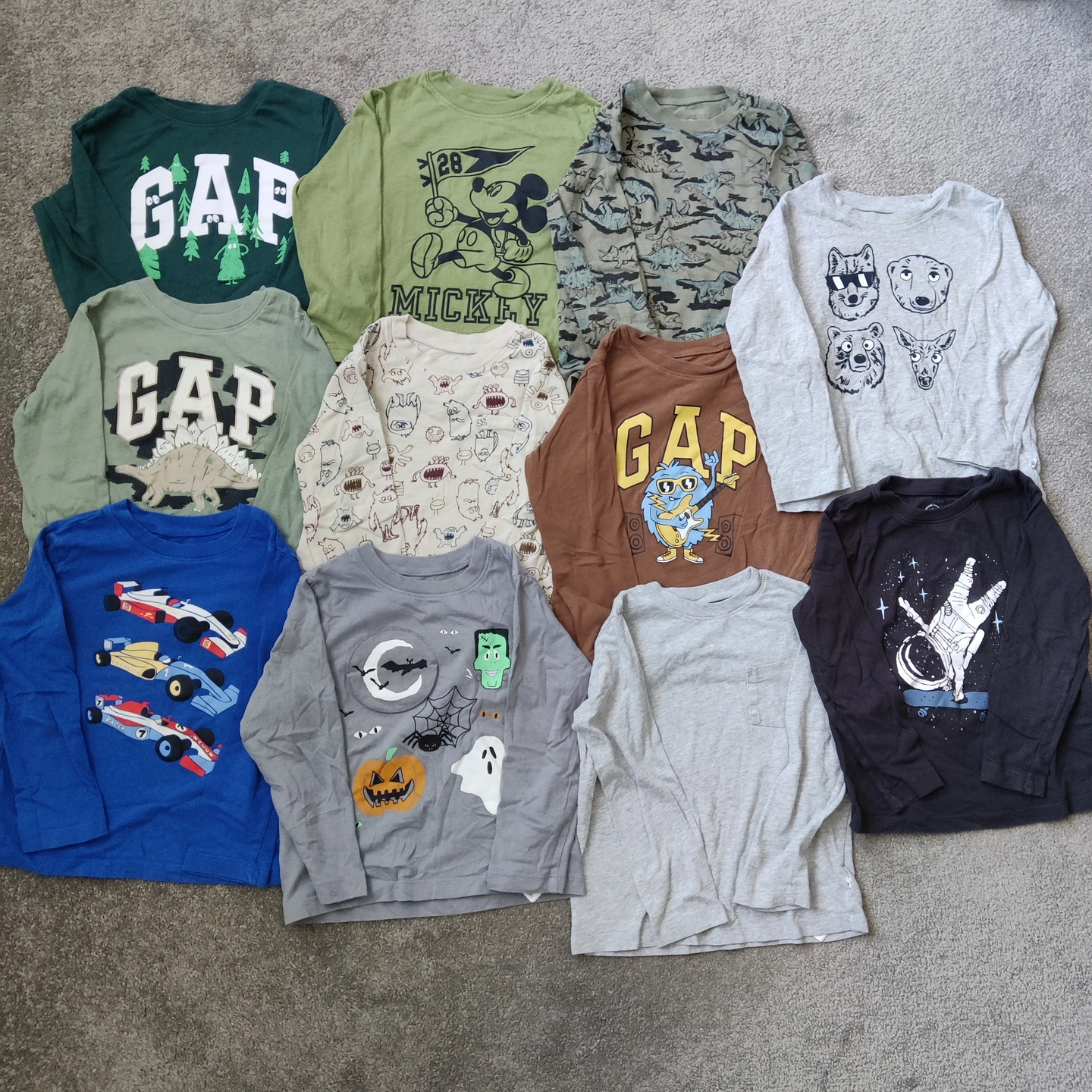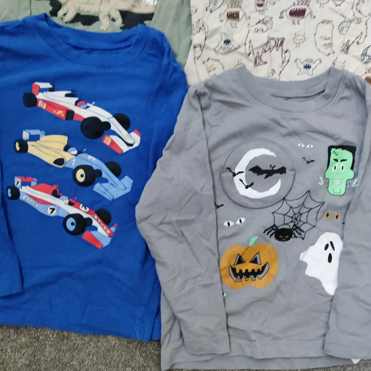Set of 11 long sleeve tee boy's size 4 Halloween Frankenstein Dinasour Race Car Space Cotton In good used condition Measurements are approximate and taken laying flat Follow me on Instagram @renewifyupcycle for unique upcycled items