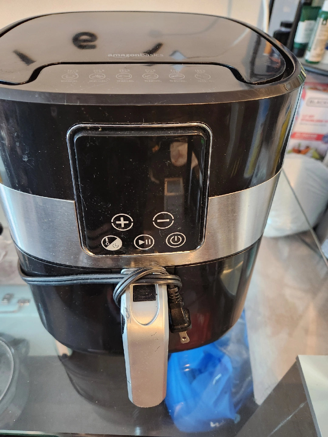 59Selling a used AmazonBasics air fryer in black. It's in good working condition and ready for a new home. Great for quick and easy meals!