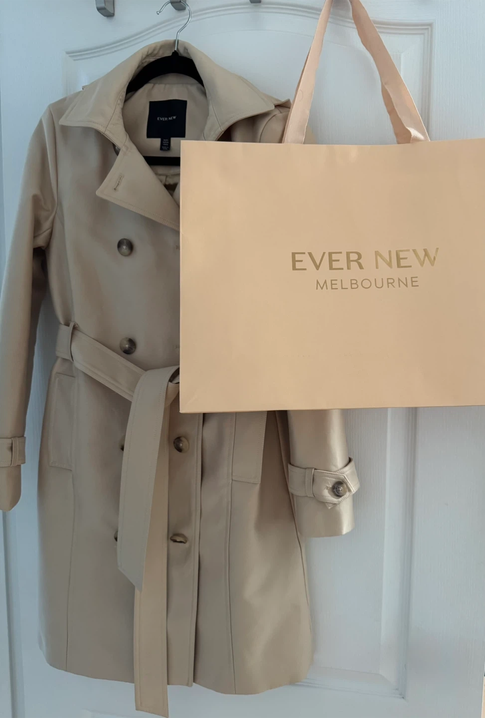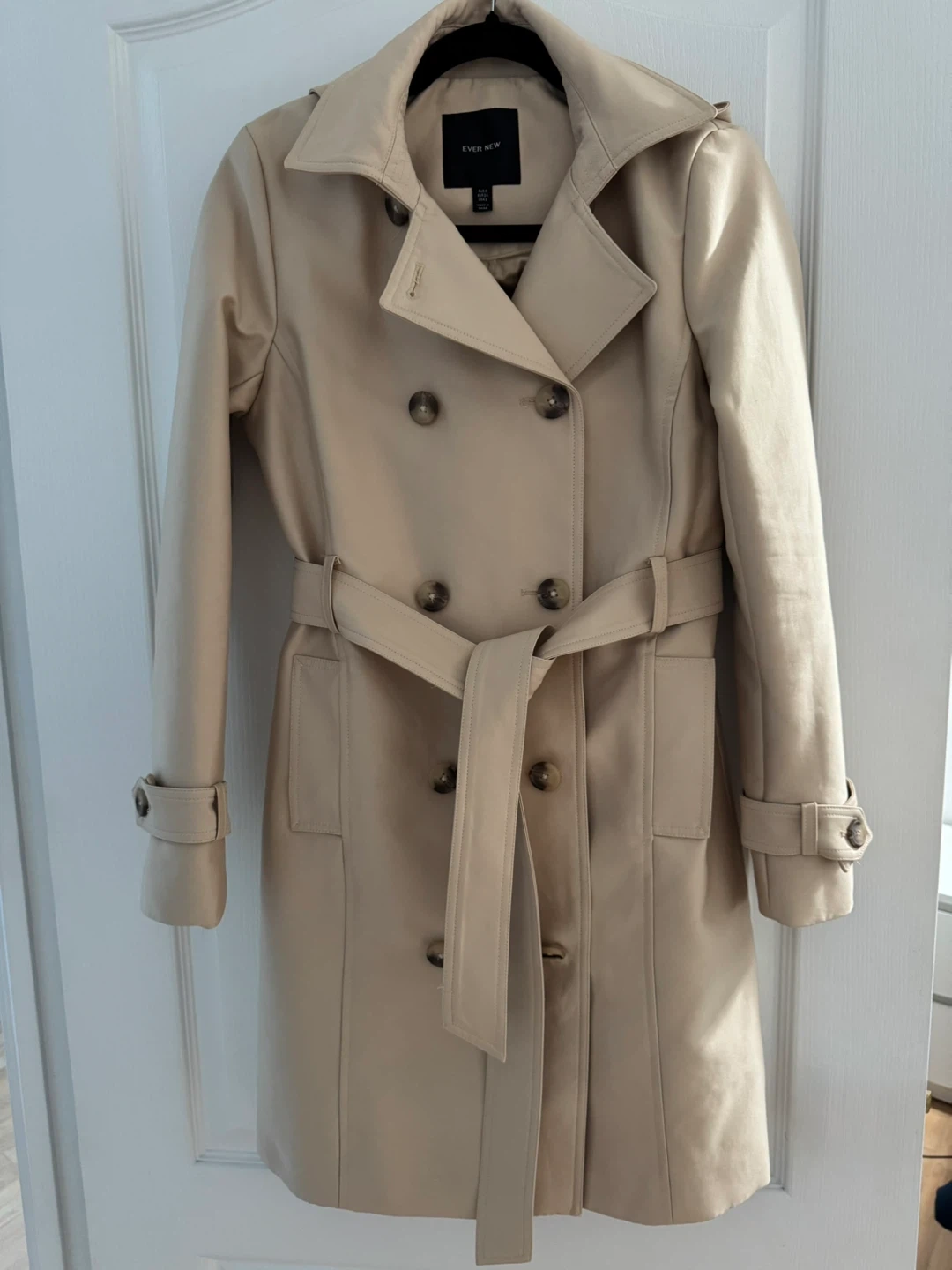 A stylish beige trench coat from Ever New! It's in great condition and ready to add a touch of elegance to your wardrobe. Perfect for those cooler days and evenings!