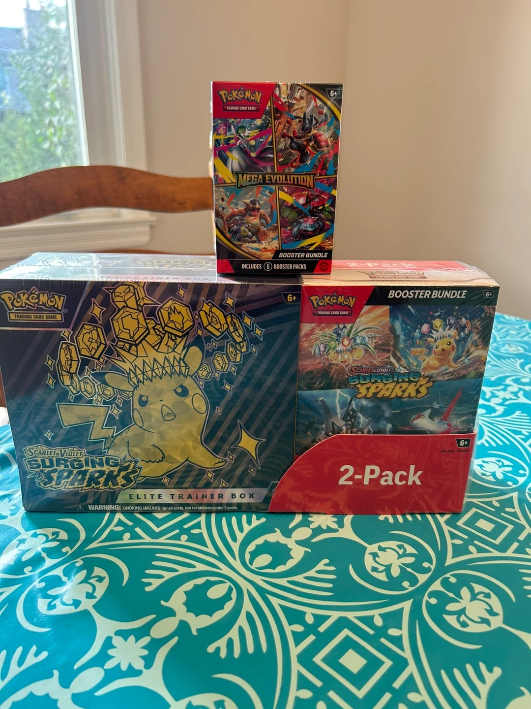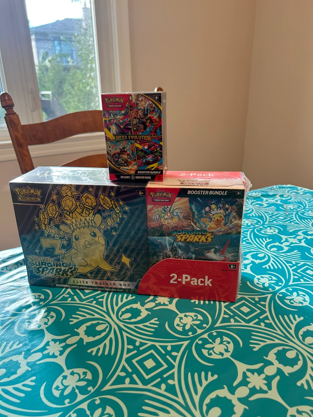 Pokémon Surging Sparks ETB and Booster Bundle / Mega Evolutions