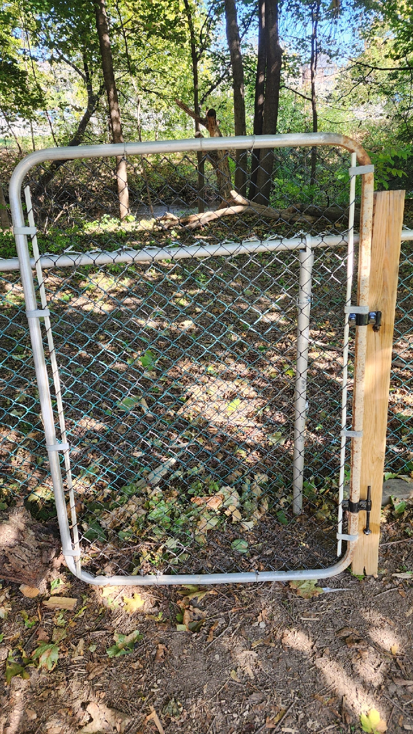 651This is a used chain link fence gate in good condition, slight rust, new hinges, ready to secure your property or garden. The gate comes as seen in the photos. It is sturdy and functional, perfect for residential or commercial use. Dimensions are approximately 4.15(102cm) feet wide by 5 feet high. Pick up only, doesn't fit in my sedan. Streetsville pick up.