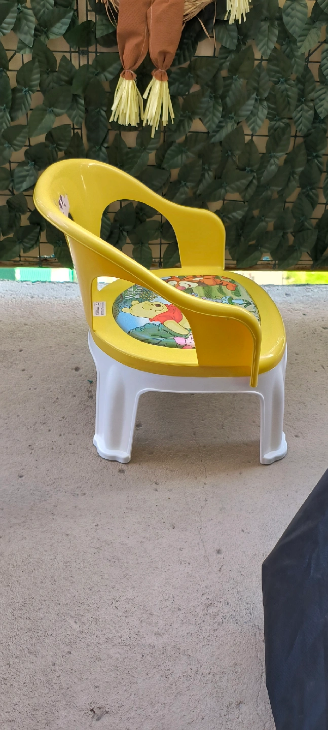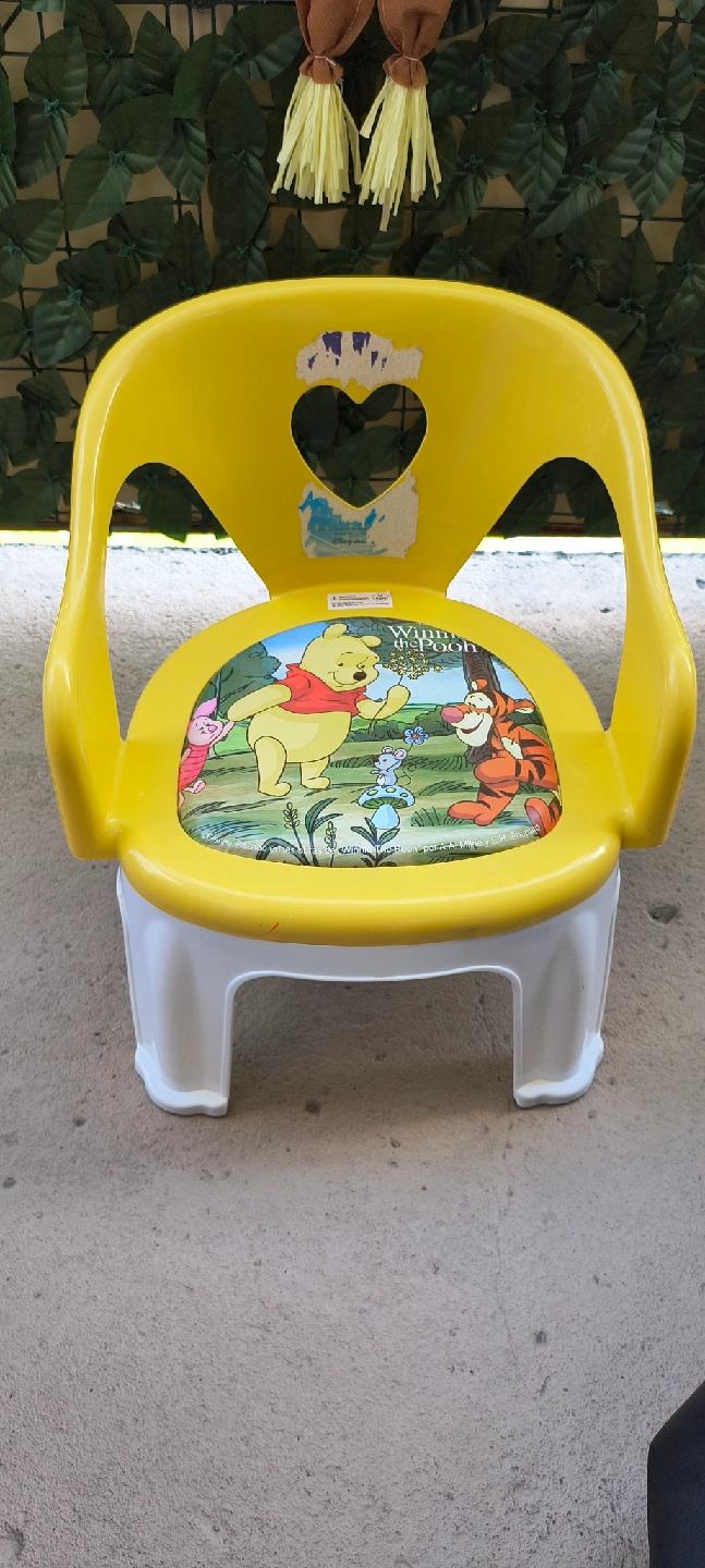 Winnie the Pooh themed chair. It's in great shape and ready for a new home. When seated, the chair makes a squeaky sound to entertain your little one.