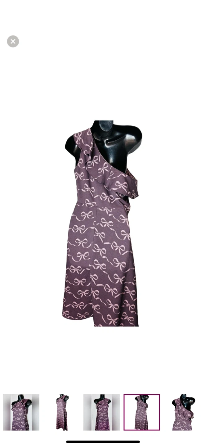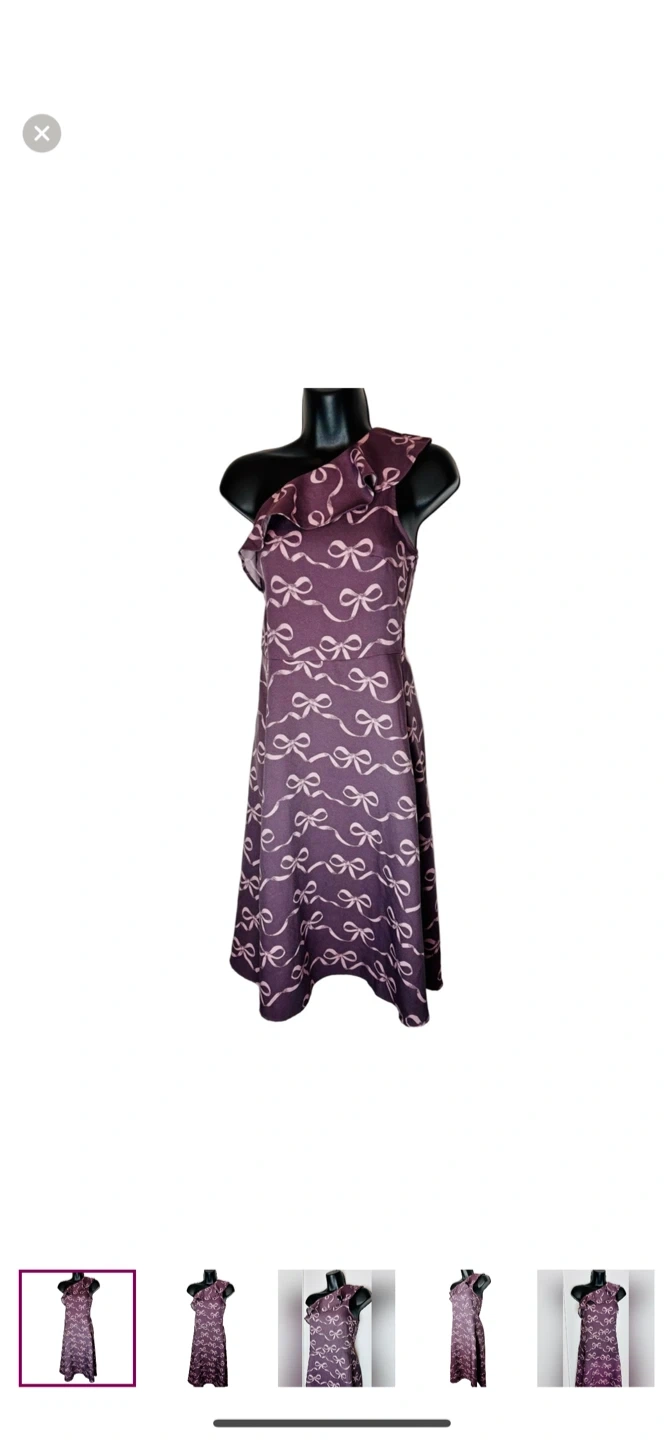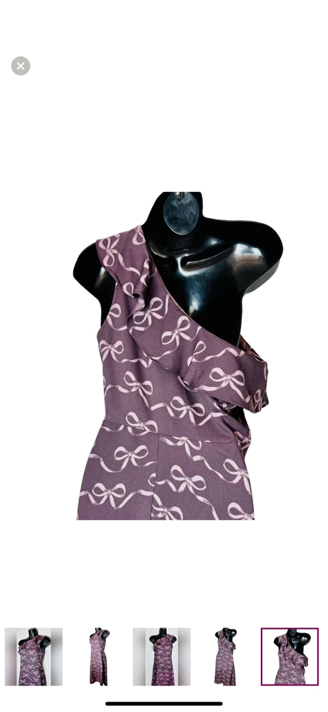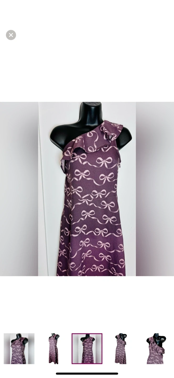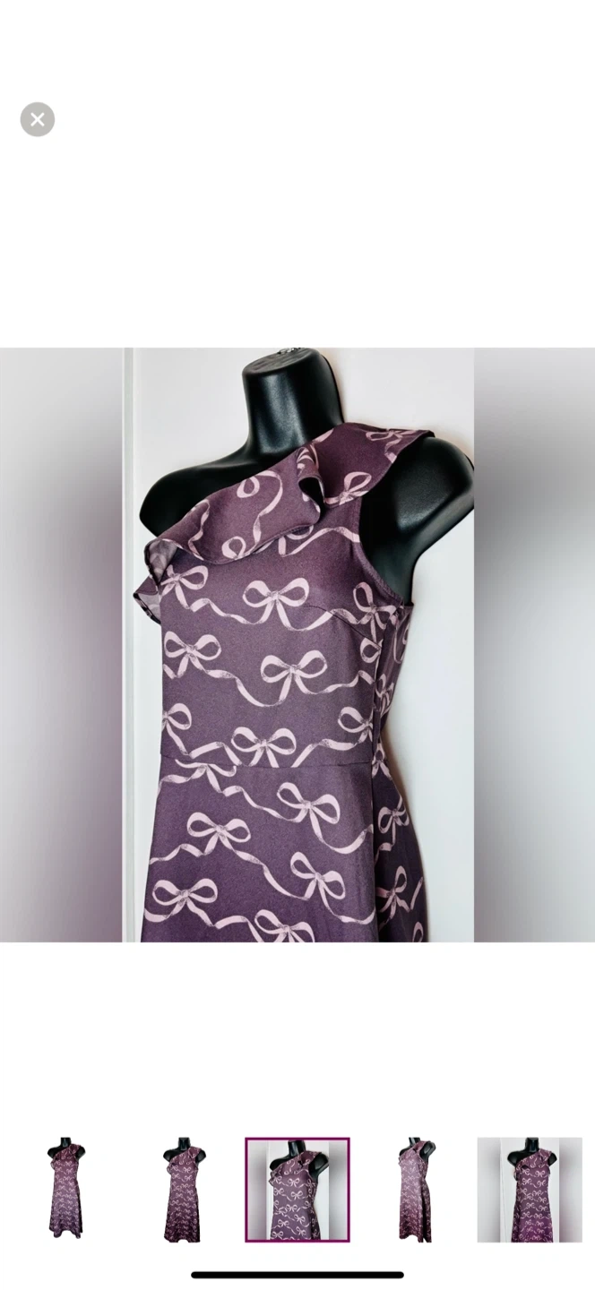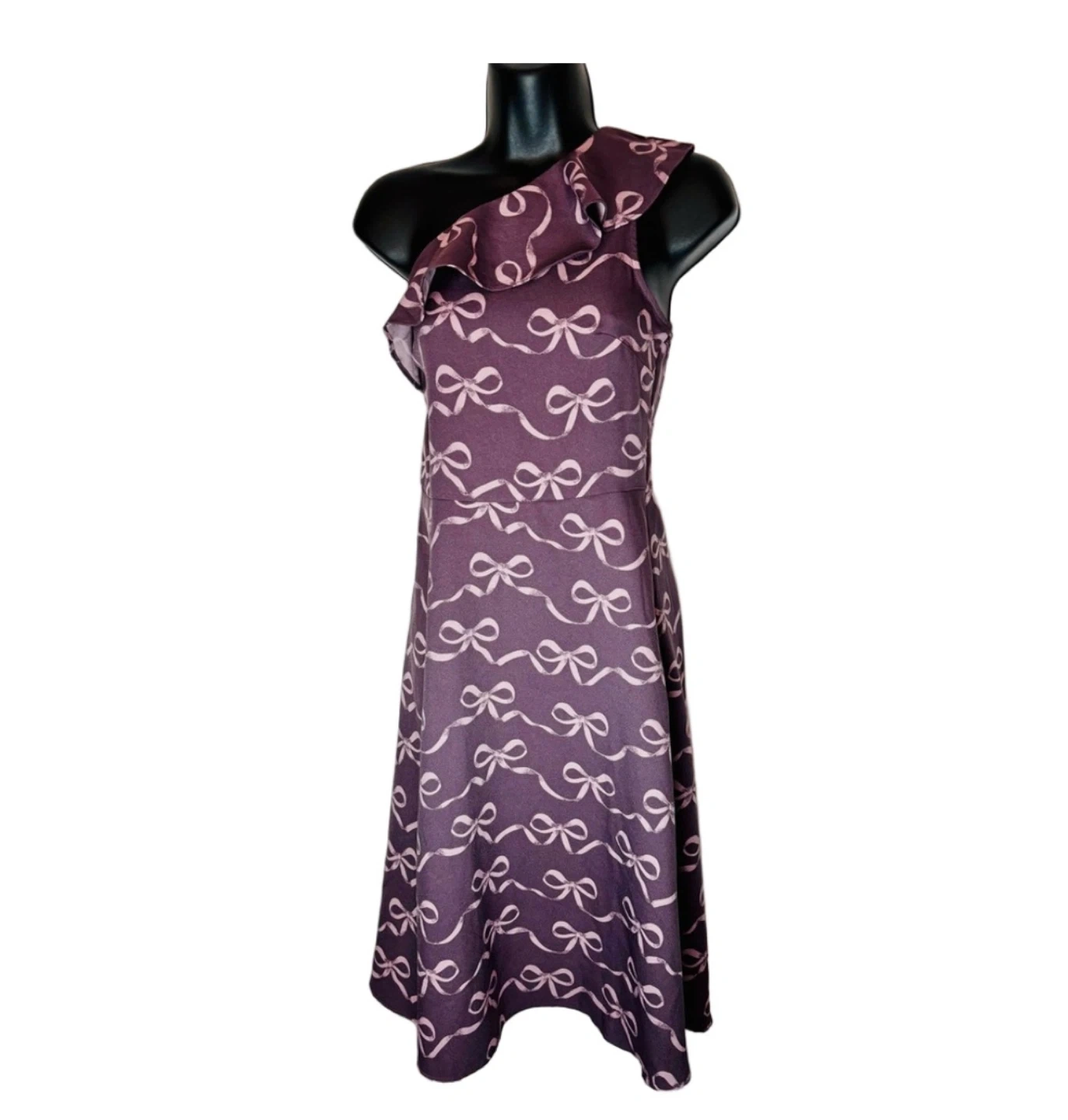 Step out in style with this elegant purple one-shoulder dress. Perfect for any occasion, this dress features a chic bow pattern that adds a touch of sophistication.