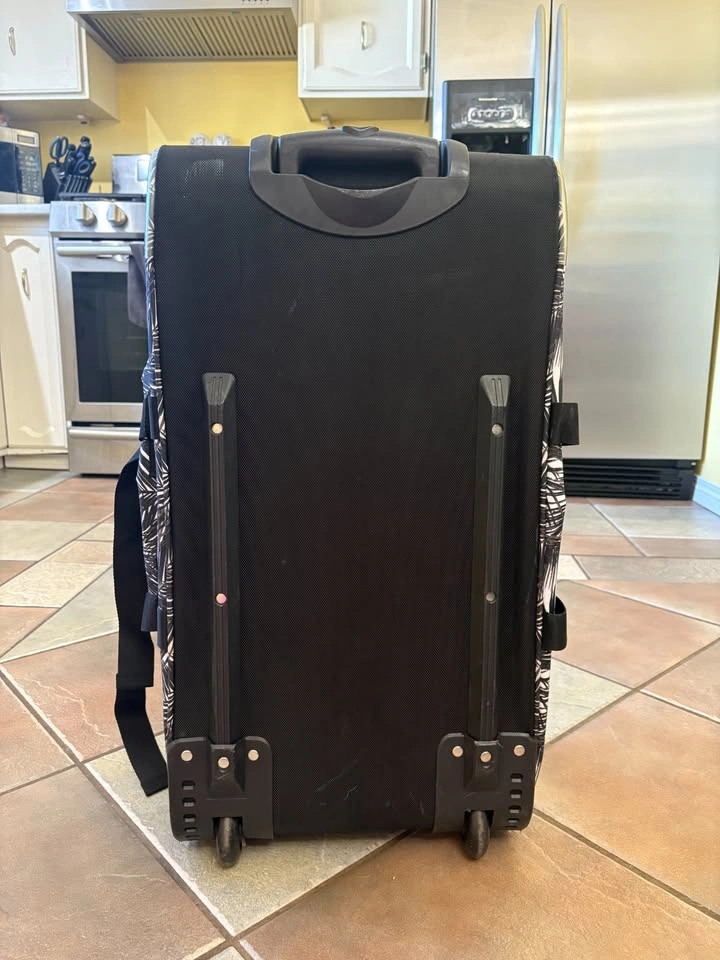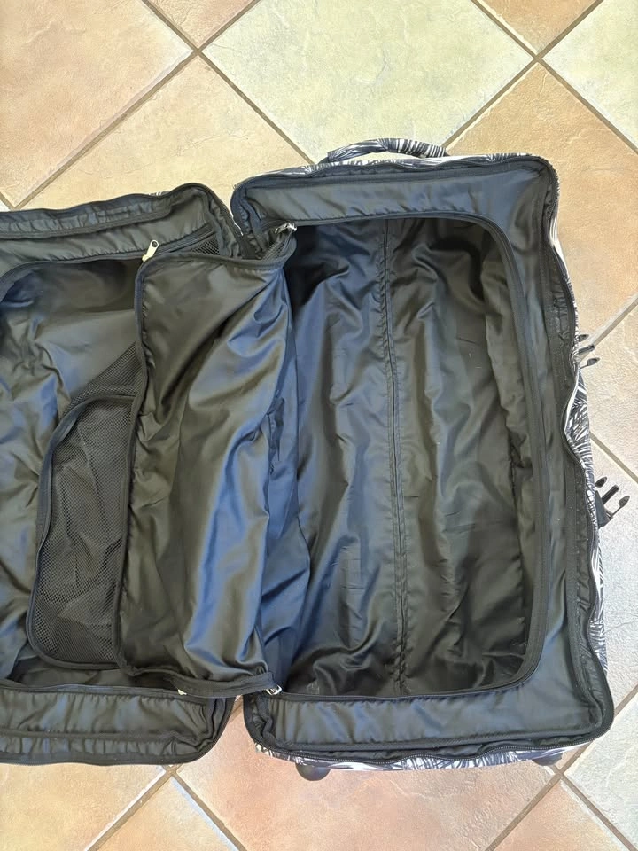 No issues - all zippers work, has retractable telescoping handle and rollers. Multiple grab handles. Separate inside pockets. Clip-in straps on either side to hold closed in addition to all-around zipper.