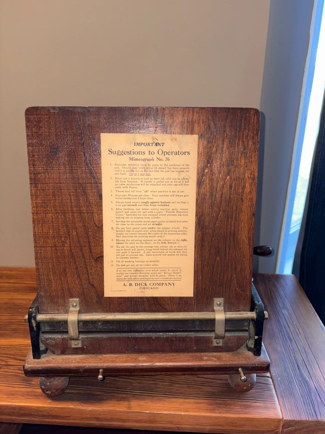 Selling an antique A.B. Dick Company Mimeograph No. 76. This vintage piece has a lot of character and would be a great addition to any collection. It comes with the original case. See photos for condition