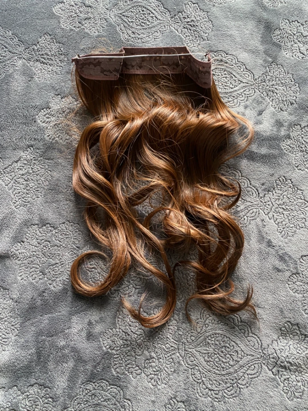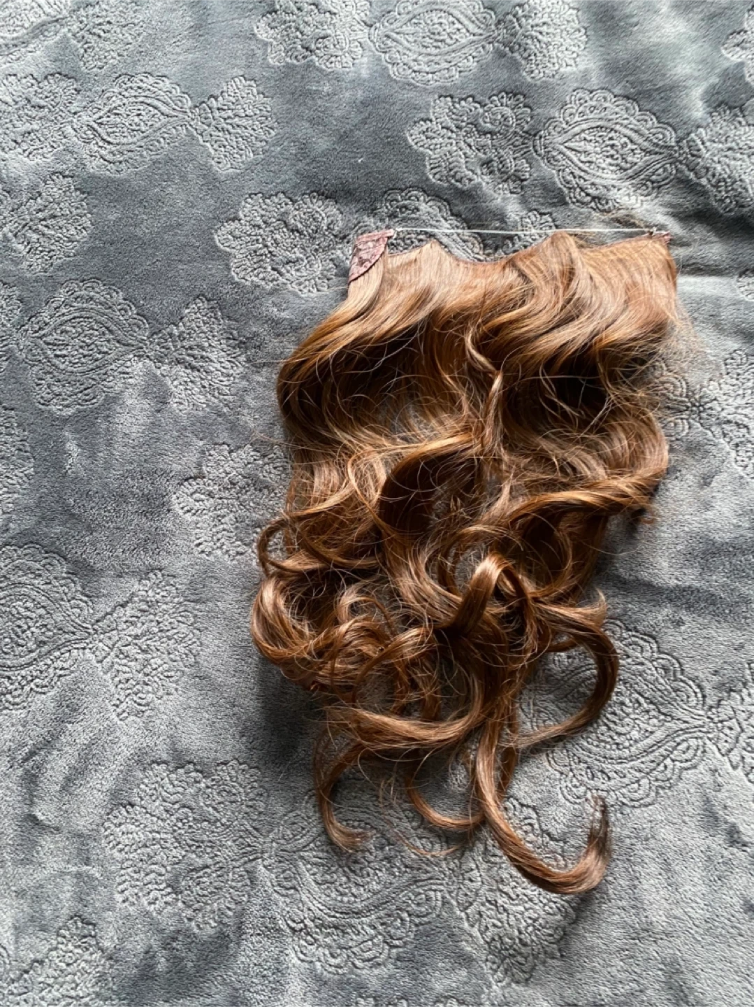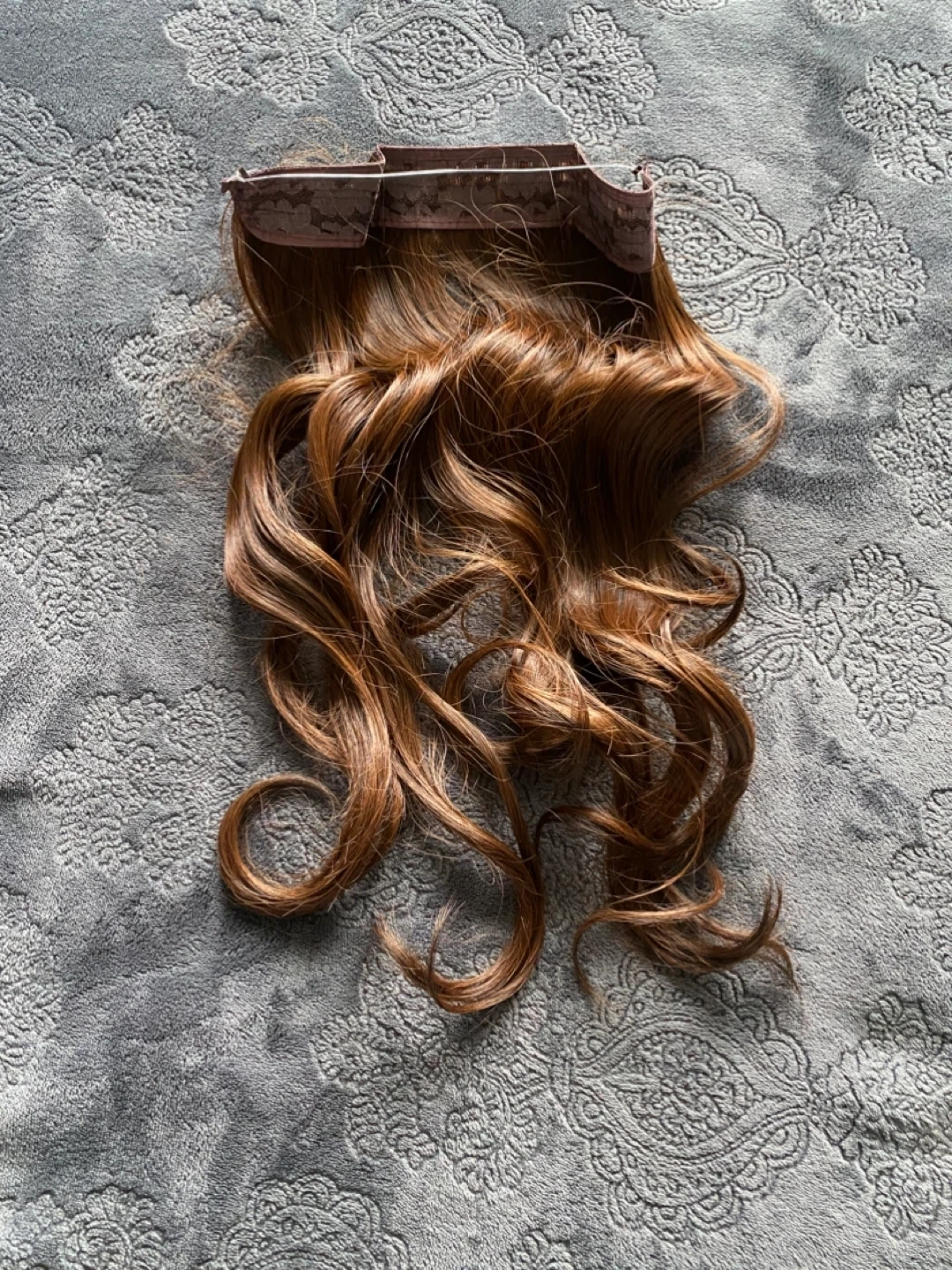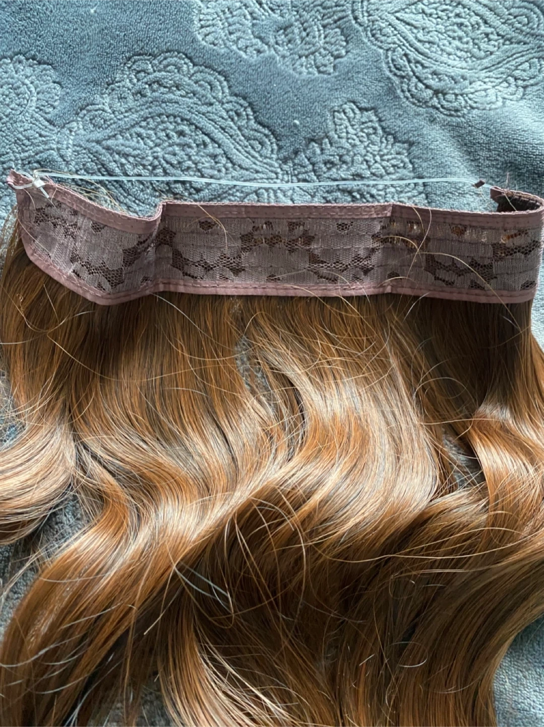 New iron friendly Light brown halo hair extensions in good condition! 18” wavy.