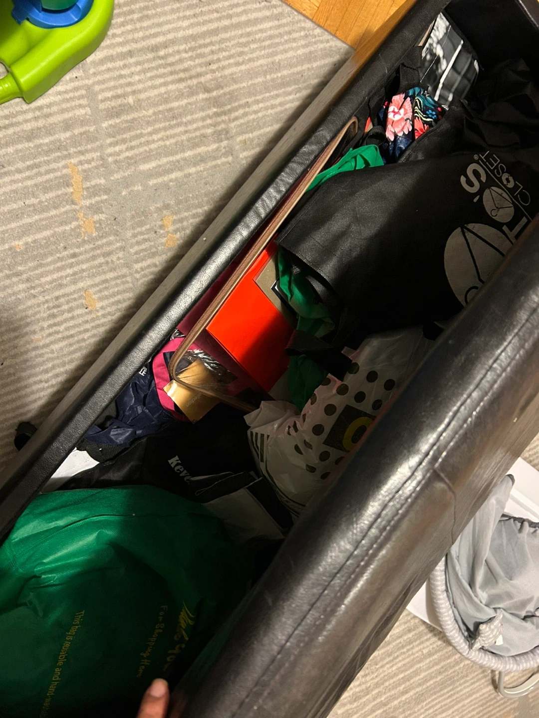 🥕🥕🥕Selling a brown storage ottoman bench. It's great for adding extra seating and storage to any room. Perfect for storing blankets, pillows, or toys. It has some signs of wear, but is in overall good condition!