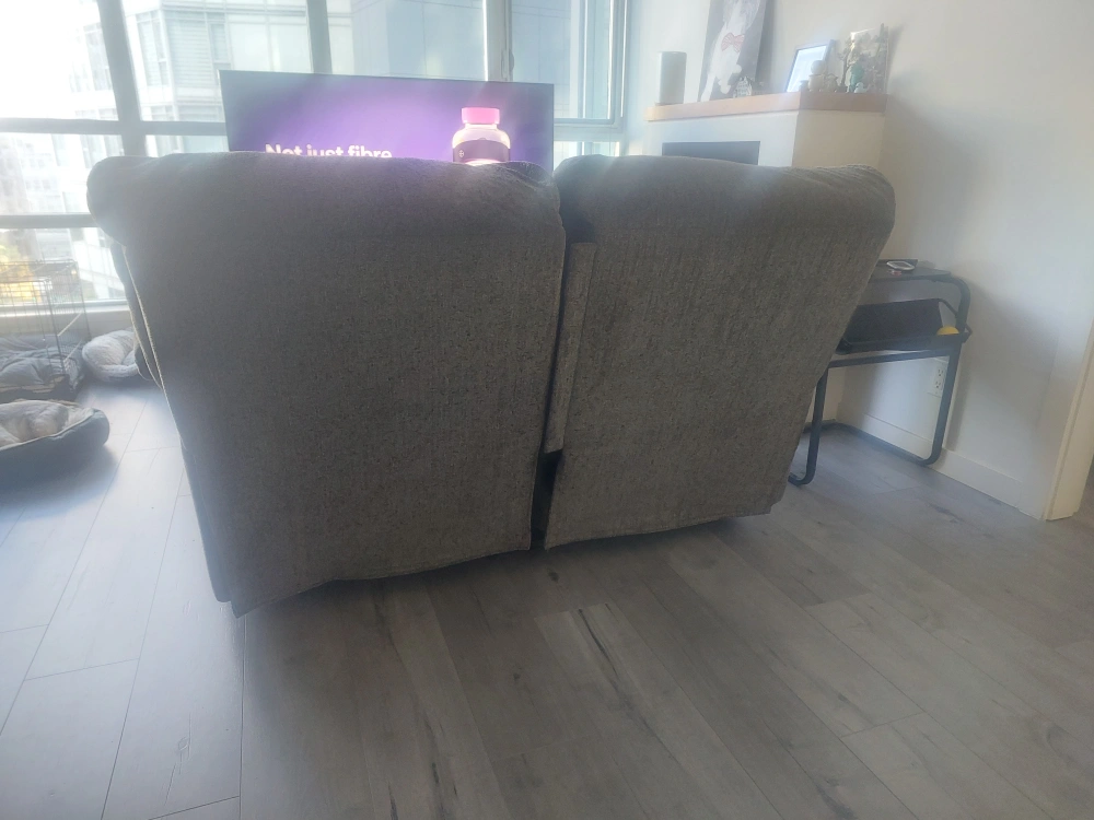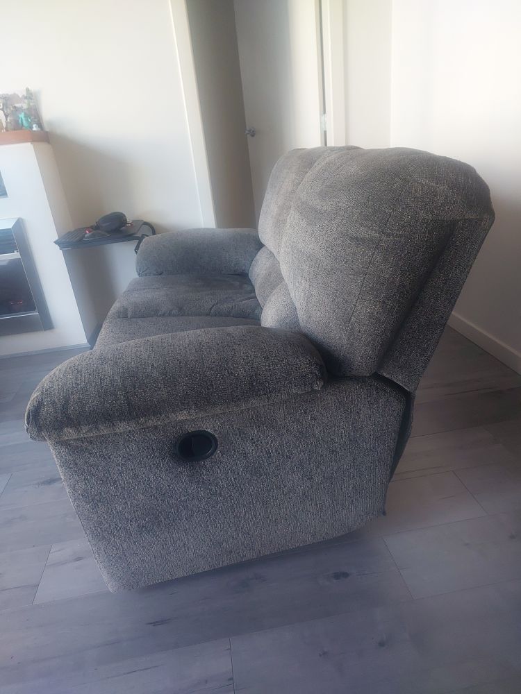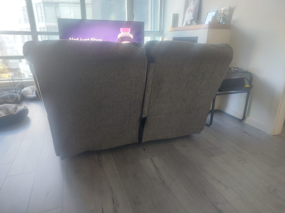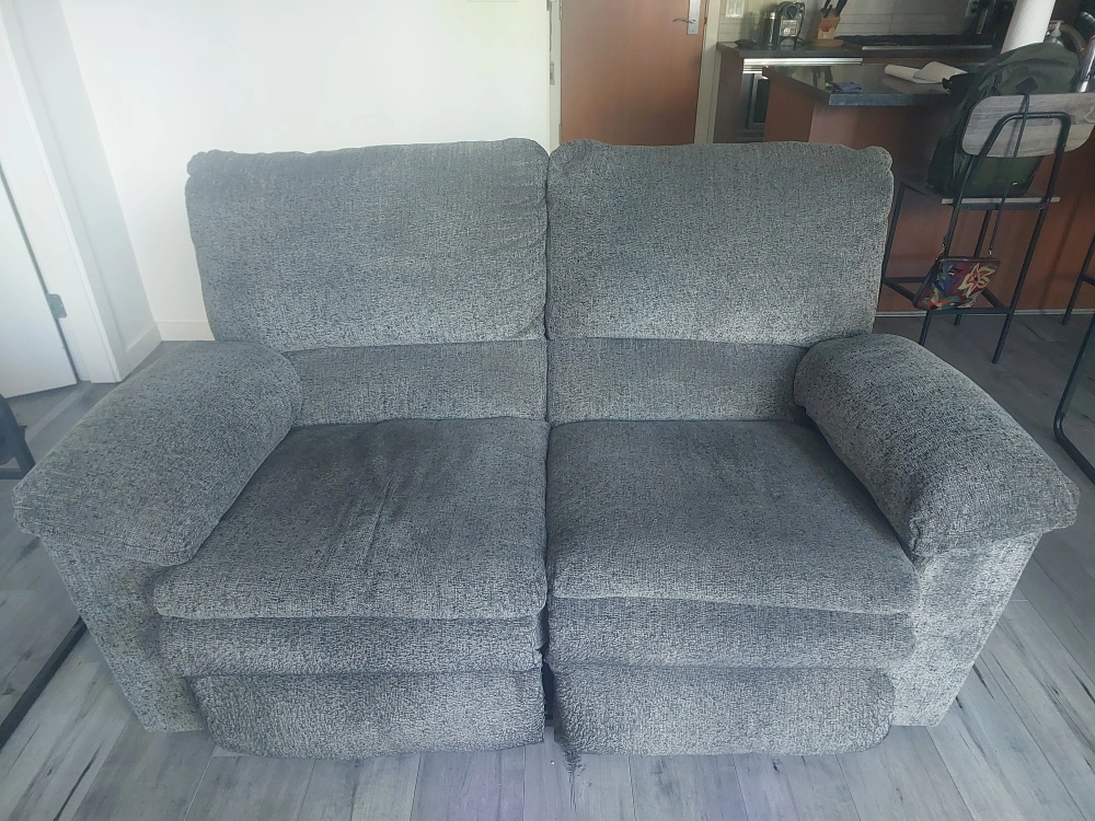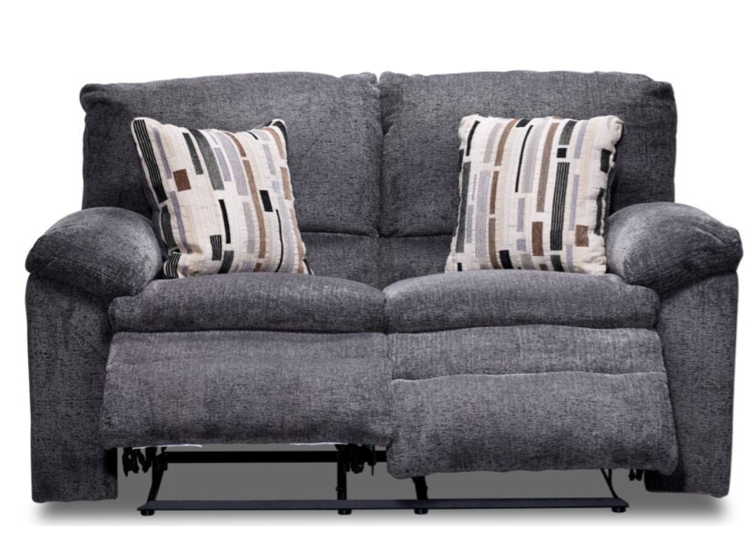 Comfy grey Tosh Reclining Loveseat-Pewter for sale! It's in great shape and ready for a new home. Bought in January 2025 from Leon's for 1079 CAD. Selling due to relocation. Check www.leons.ca for store images.