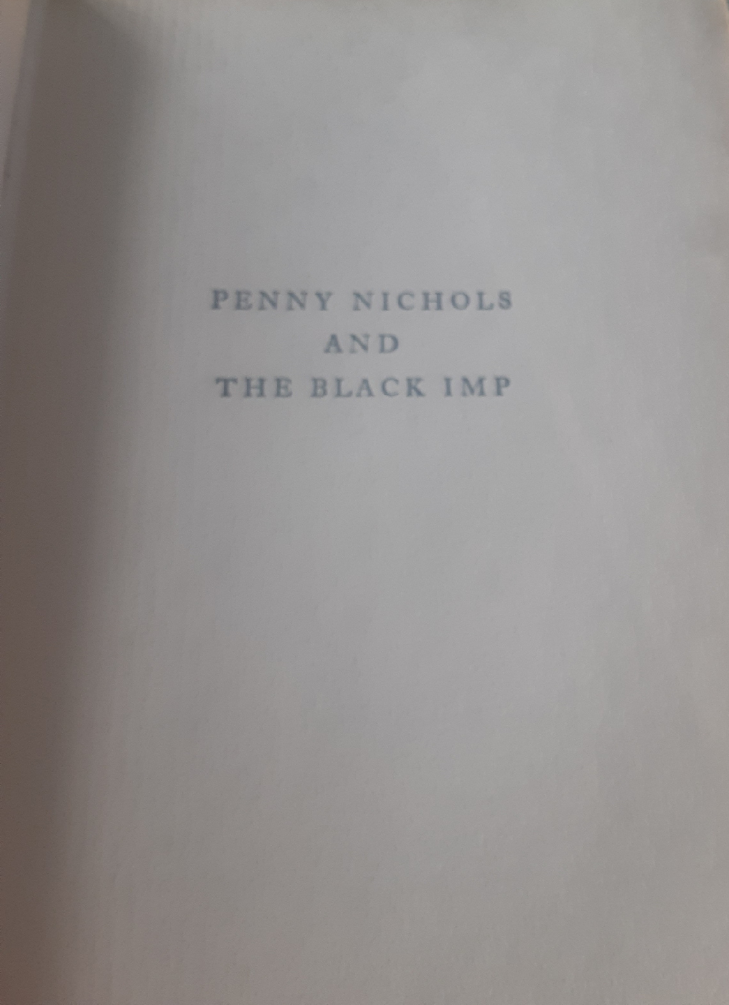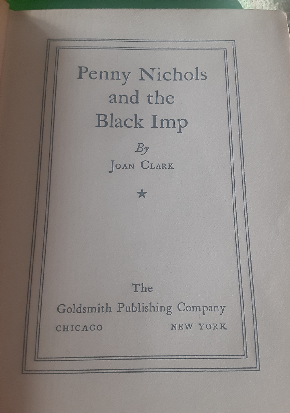 Selling a copy of Penny Nichols and the Black Imp by Joan Clark. Published by Goldsmith Publishing Company. It's a vintage book in fair condition.