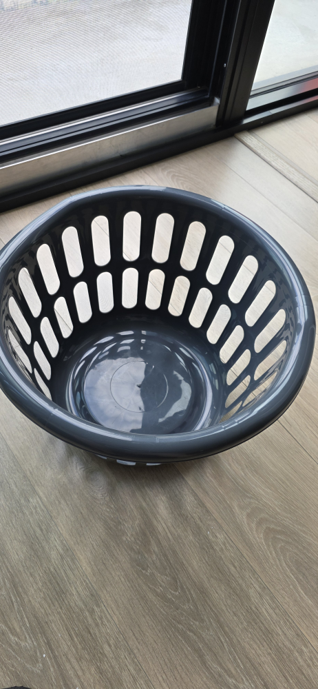 Selling a grey plastic laundry basket. It's in great condition and ready for a new home! Perfect for laundry or storage
