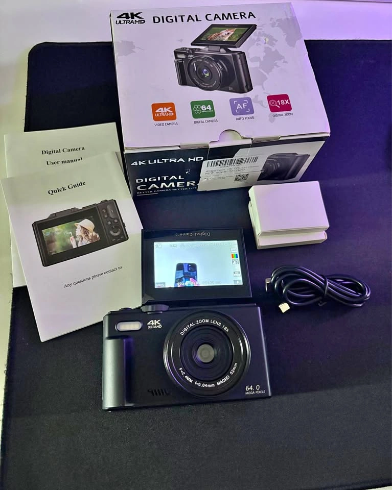 Item is available as long as the listing is up. Open Box - New Pick up location is Jane and Wilson Last picture is an example of the picture quality. Digital Camera for Photography, WiFi 64MP 4K Vlogging Camera for YouTube, 3" 180° Flip Screen 18X Digital Zoom Compact Vlog Travel Cameras with 32GB TF Card & 2 Batteries, Black