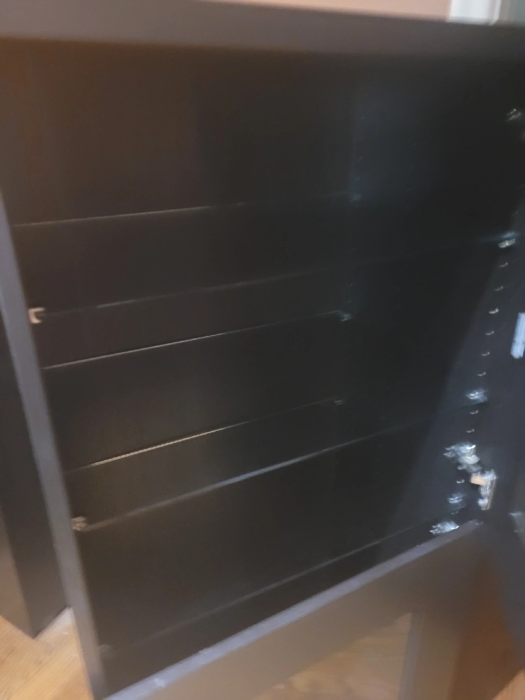 Selling a black display cabinet. It's in good shape, brackets for doors may need a little tightening.