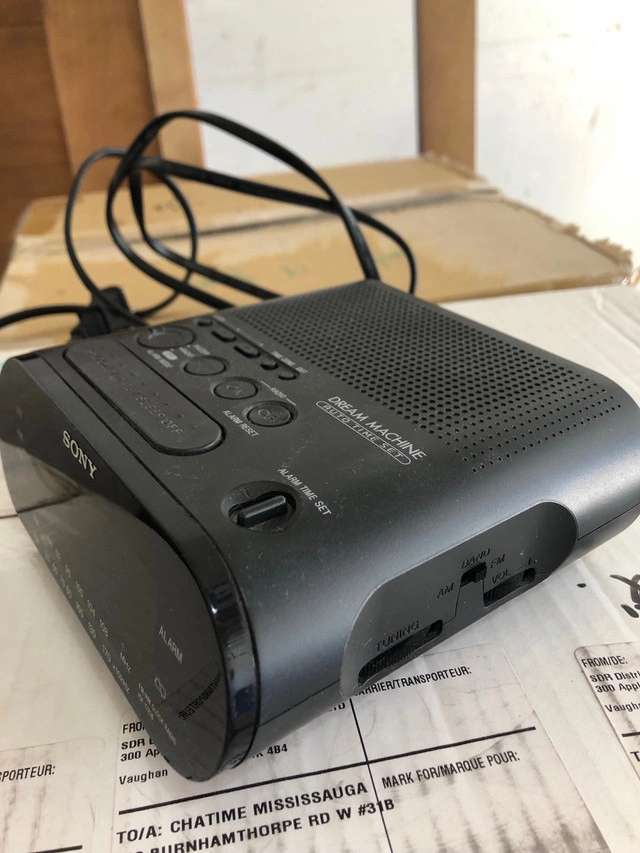 Selling a Sony Dream Machine clock radio. It's a reliable bedside companion with AM/FM radio, alarm, and sleep timer functions. This unit is in used condition. I've found that this particular model has great reception for hard to find radio stations. Here are some of its features: * AM/FM Radio * Alarm Function * Sleep Timer This clock radio is looking for a new home. If you're seeing this ad, then yes, it's still available!