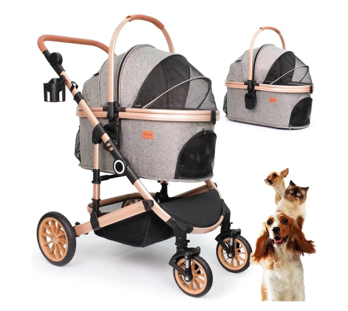 Pet Stroller with 4 Wheels, Foldable Pet Travel Carrier for Small/Medium Dogs Cats up to 50lbs, Detachable Portable Pet Bag, Storage Basket, Car Seat 3 in 1 Multifunctional (Grey) - Brand New Condition - I bought it for my cat, but he didn’t get interested. Only tried it out indoors so it is spotless and packaged. You can detach the top part and use it as a carrier. So easy to assemble and quiet. I wish my cat were into it because it is very nice. Pick up please.