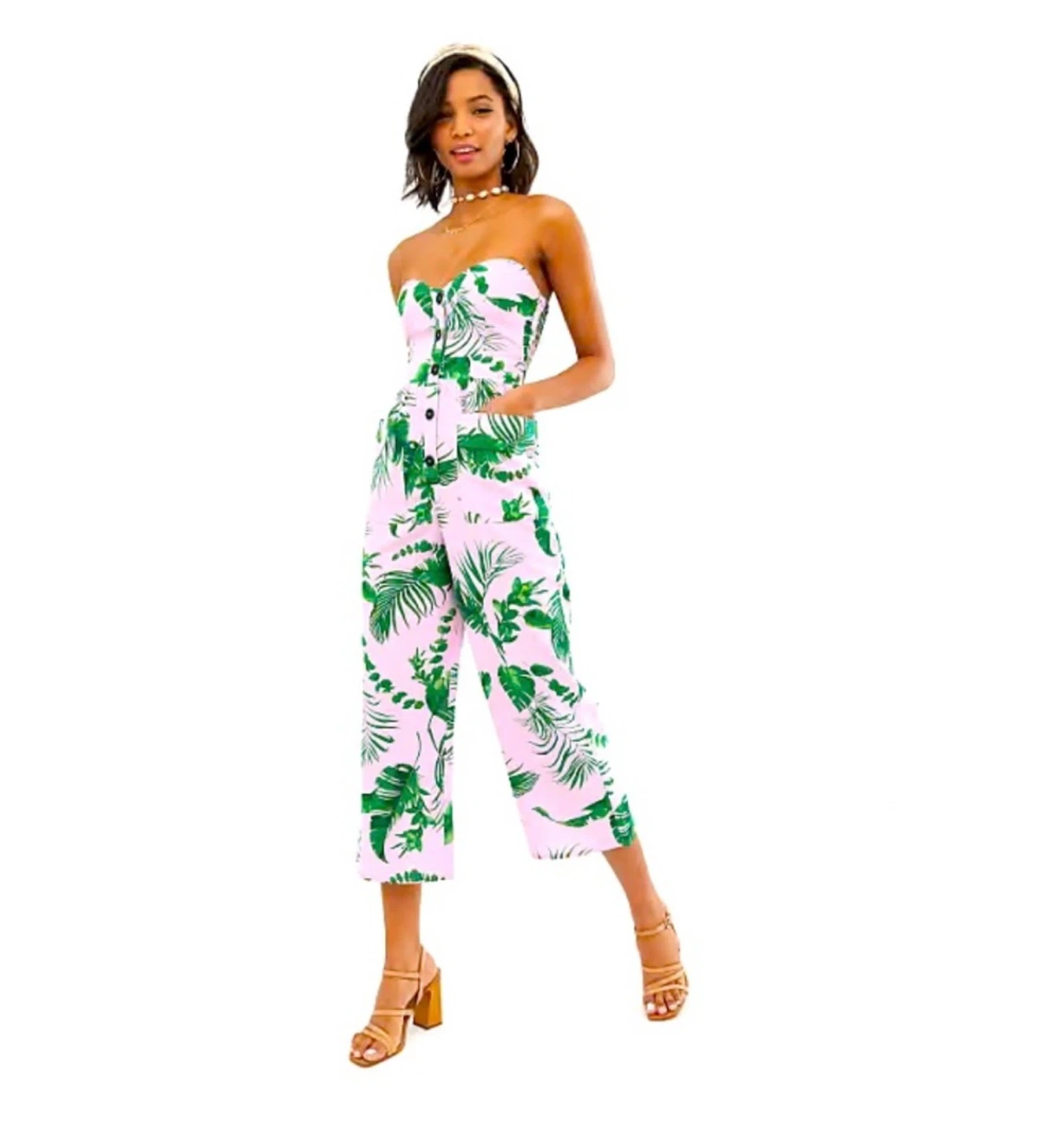 ASOS Tropical Print Strapless Linen Blend Jumpsuit