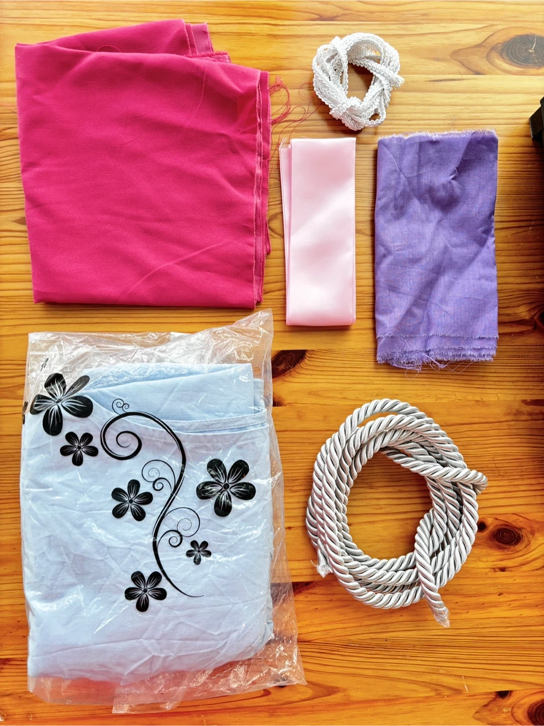 687Pick up at Dundas and River Cash only Includes parts to make a Toy Story 4 version of Bo Peep’s costume. Note this is not a complete costume and is priced accordingly. - one light blue jumpsuit with pockets! Size medium. - purple fabric for her left arm bandage - pink fabric for her waistband - silver cording to go around the shepherd hook - pink fabric for her hair bow All are brand new! Never used. Just bought for the project and didn’t use them in the end.