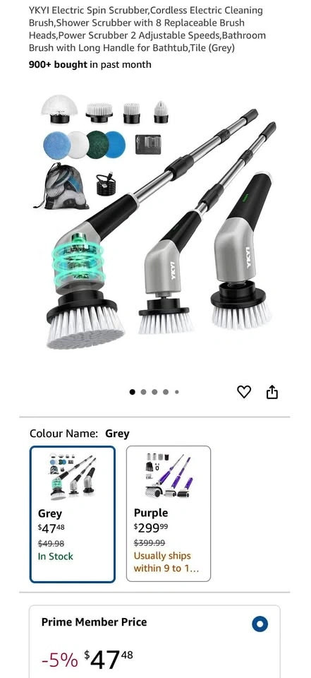 New, open box, YKYI Electric Spin Scrubber, Cordless Electric Cleaning Brush, Shower Scrubber with 8 Replaceable Brush Heads, Power Scrubber 2 Adjustable Speeds, Bathroom Brush with Long Handle for Bathtub, Tile (Grey) Retails for $47. 48 on sale on Amazon. Asking $25 Pick up near Coxwell and Danforth