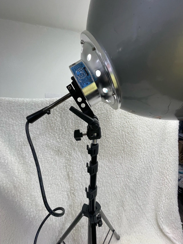 Illuminate your creative space with this sturdy and reliable lighting setup! This is a used piece of equipment, perfect for photography or video projects, which has seen some use but remains fully functional. Key Features: * Type: Lighting Unit: 3 spiral 26w bulbs (4th bulb included * Condition: Used, some damage to handle * Tripod Included