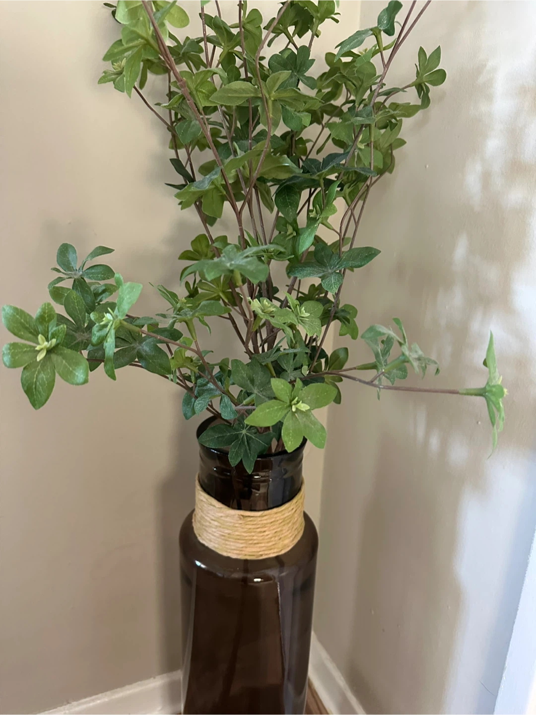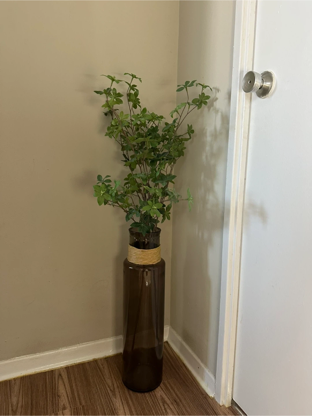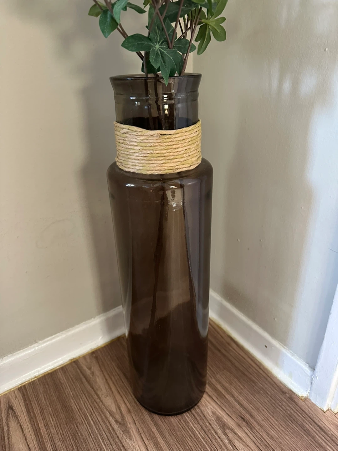 Brown Glass Vase with Twine Detail