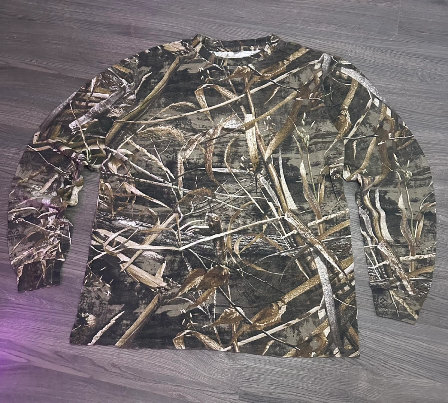 long-sleeve shirt with a camo pattern! yk you want to style it with ur tims, and it’s fall and getting chilly, it's perfect for outdoor activities or just adding a bit of rugged style to your wardrobe. The material is comfortable and durable, great for layering or wearing on its own