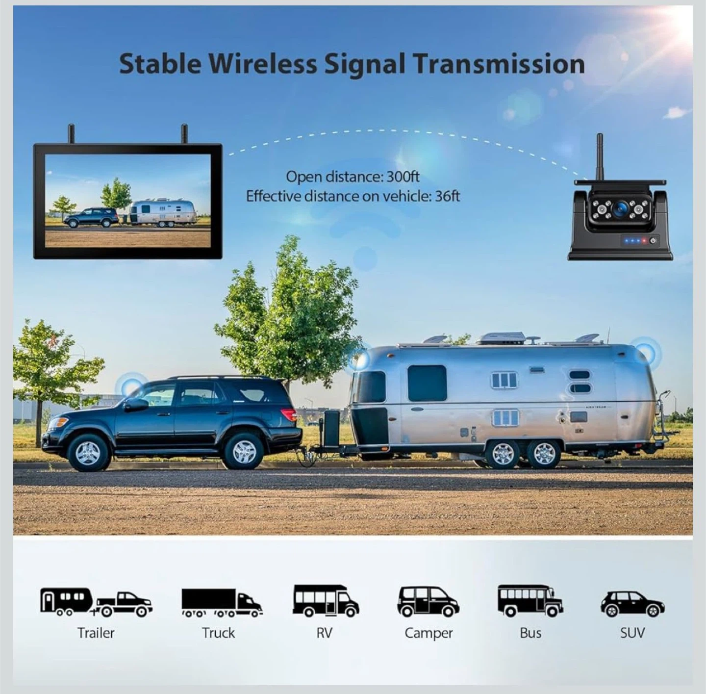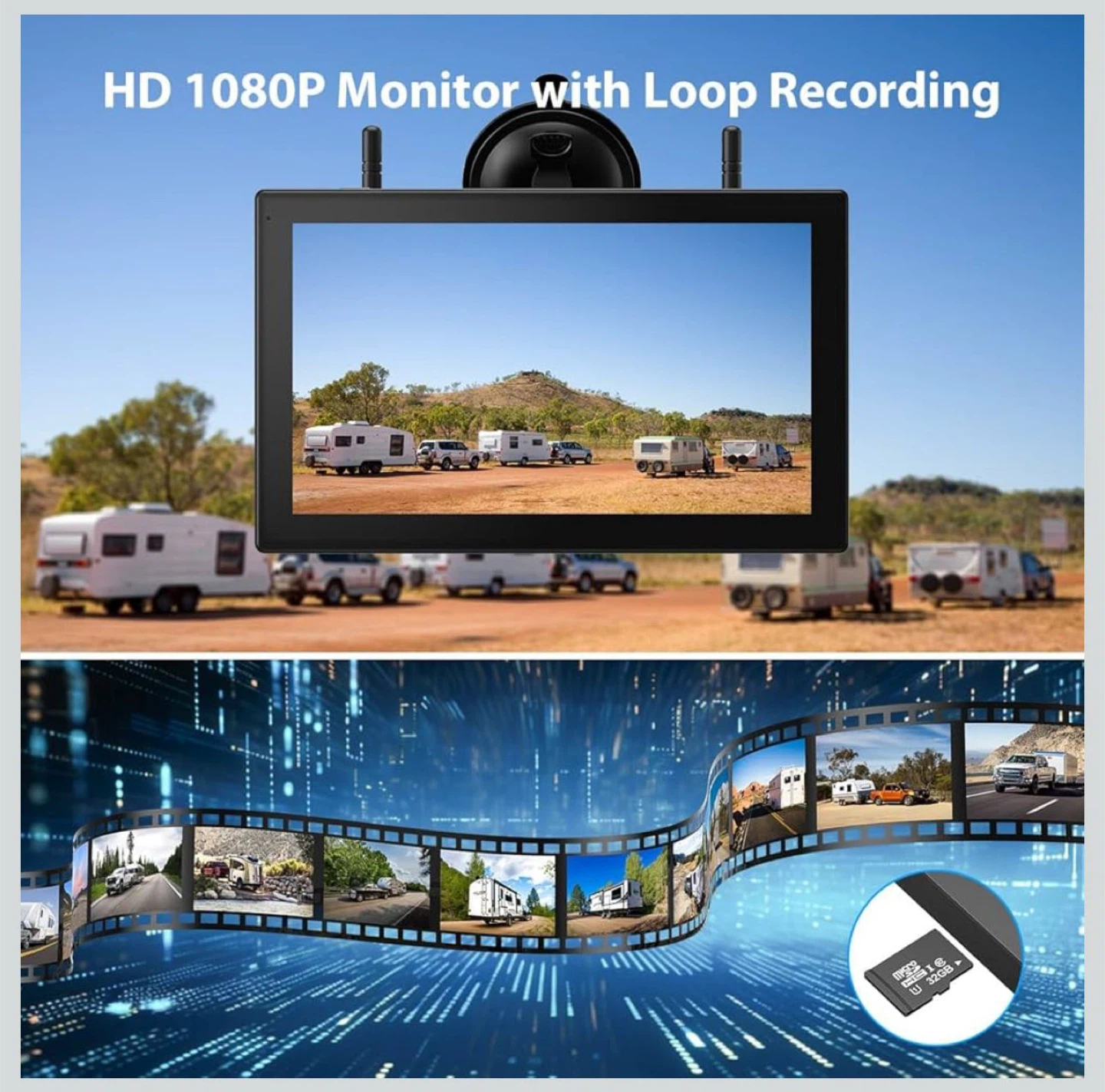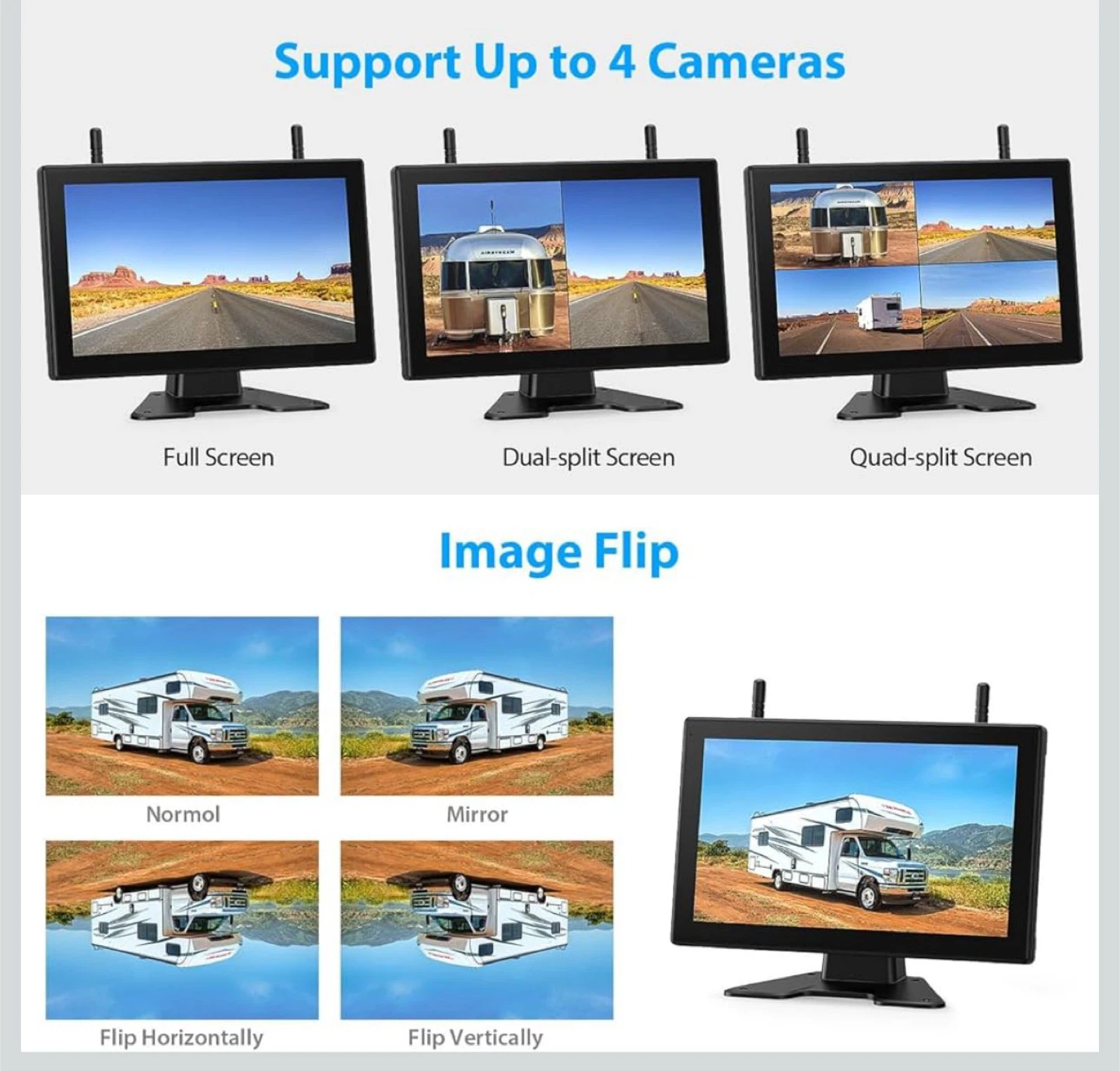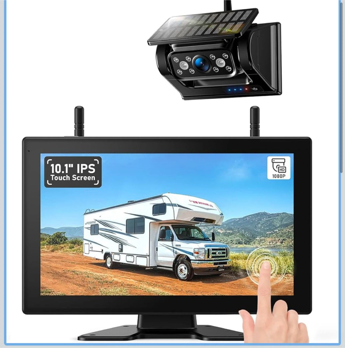 10.1" Magnetic Solar Wireless Backup Camera System, HD1080P Loop Recording 10.1 Inch Touchscreen Monitor with Quad RV Backup Cameras Wireless System for RV Trailer Tractor Truck, BL101