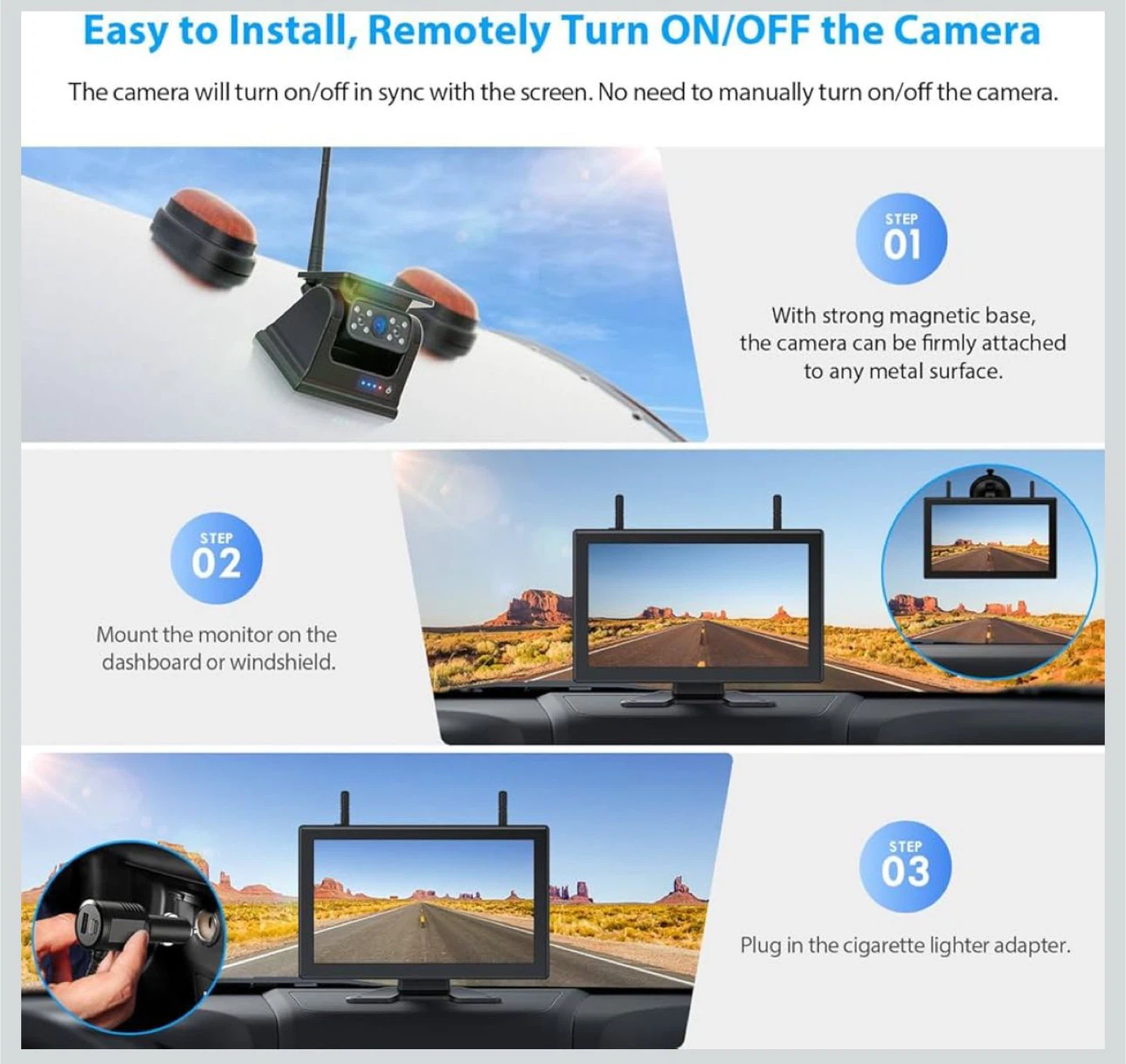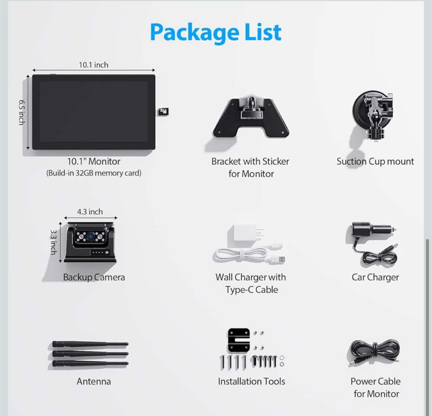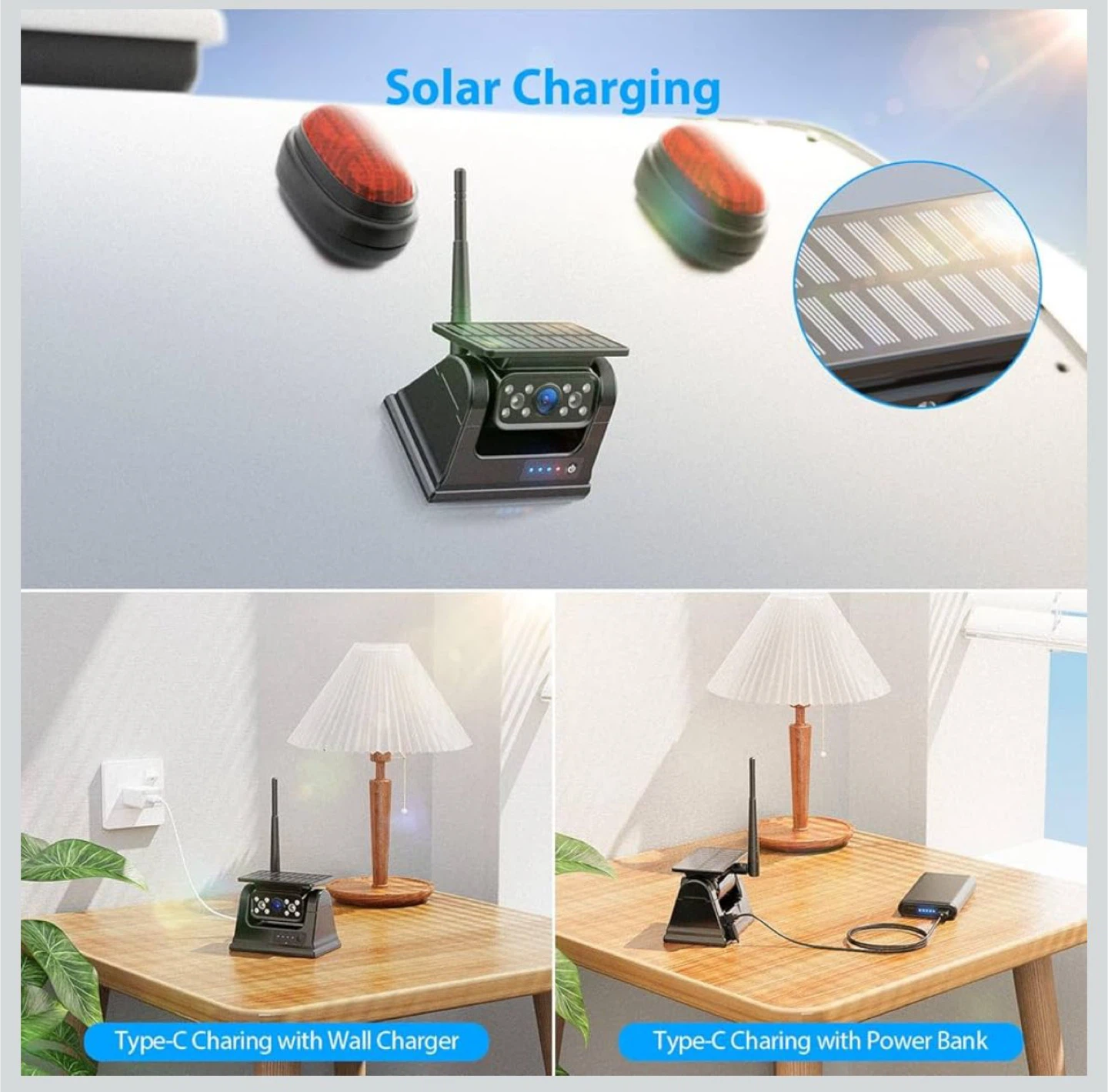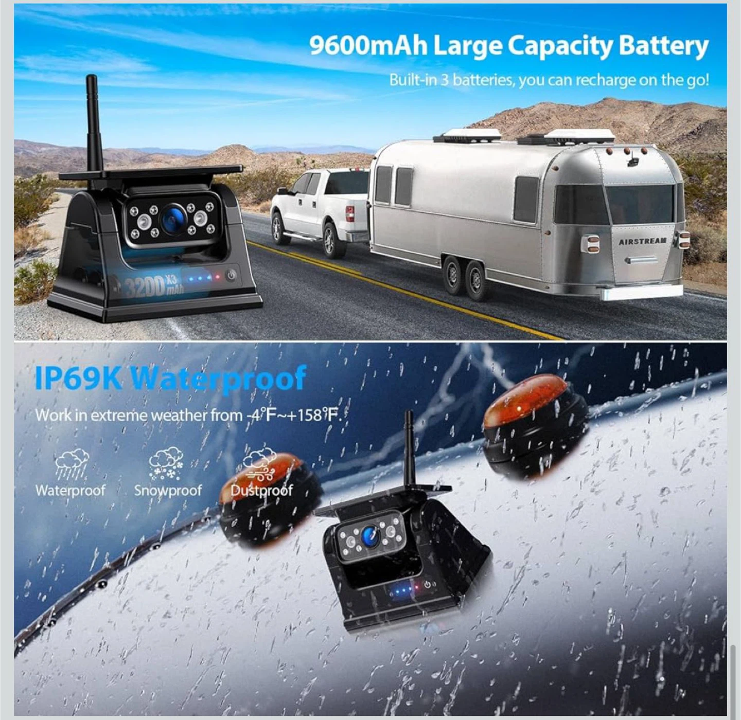 10.1" Magnetic Solar Wireless Backup Camera System, HD1080P Loop Recording 10.1 Inch Touchscreen Monitor with Quad RV Backup Cameras Wireless System for RV Trailer Tractor Truck, BL101