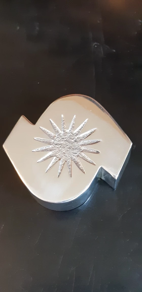 810Unique Canadian Hoselton Sculpture/ Paperweight It is made of hand cast aluminum and is in great condition. Perfect for adding a touch of modern art to your home!