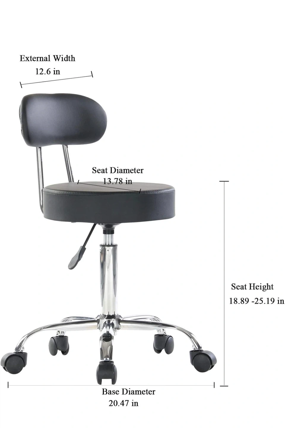 - Seat Height: Adjustable from 18.89 to 25.19 in